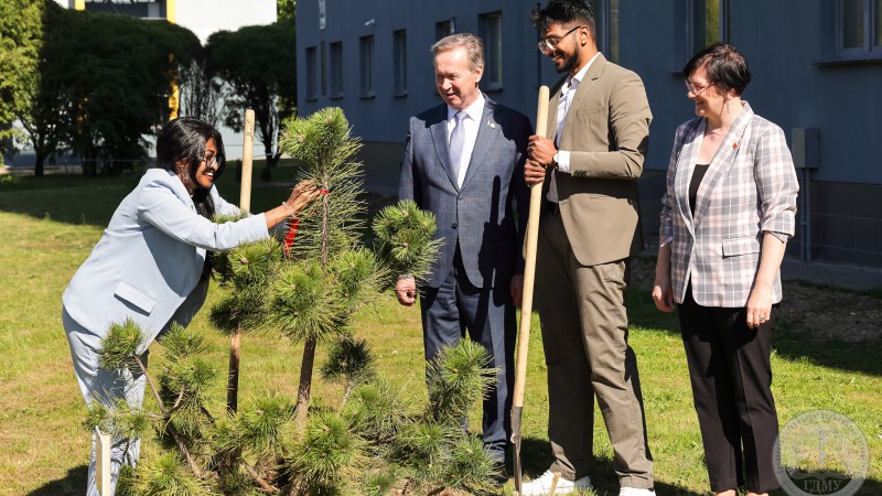 Участие в церемонии посадки деревьев приняли ректор ГрГМУ Игорь Георгиевич Жук, проректор по идеологической и воспитательной работе Ирина Андреевна Курстак, начальник студенческого городка Наталия Александровна Козловская, заместитель декана факультета иностранных учащихся Людмила Николаевна Гущина, студенческий актив и другие гости.