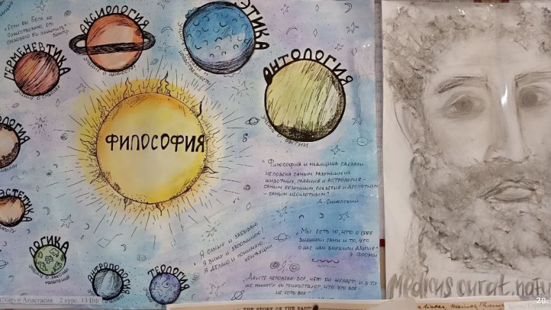 В рамках Дня философии на кафедре социально-гуманитарных наук ГрГМУ прошел конкурс творческих работ студентов. Будущие врачи представили более 40 уникальных воплощений философии, с которыми можно было ознакомиться на протяжении нескольких дней в фойе кафедры.