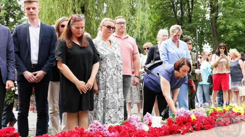В числе участников митинга-реквиема были и руководство Гродненского государственного медицинского университета. Ректор Игорь Георгиевич Жук, проректор по международным связям и внебюджетной деятельности Виталий Владимирович Воробьев, начальник военной кафедры, полковник медицинской службы Владимир Александрович Новоселецкий возложили венок к мемориалу в знак памяти о тех, кто отдал свою жизнь за наше мирное небо.