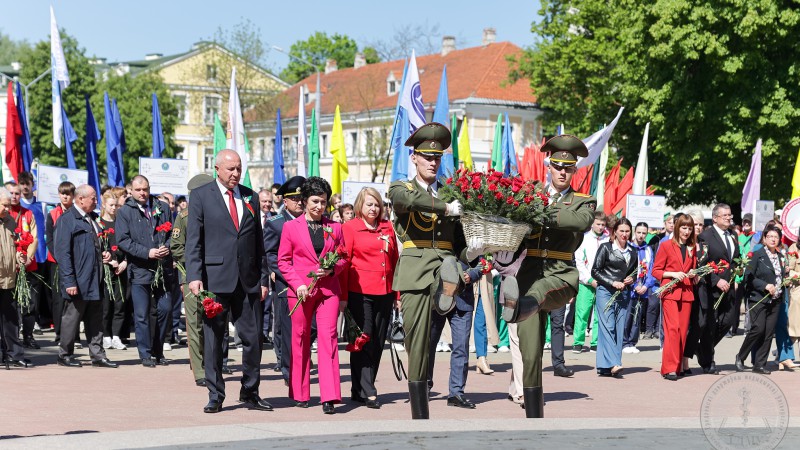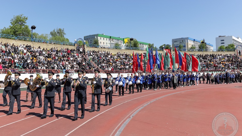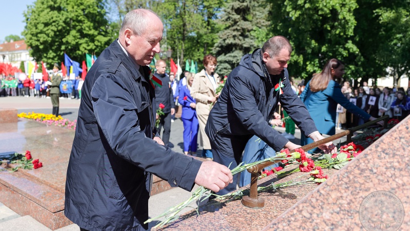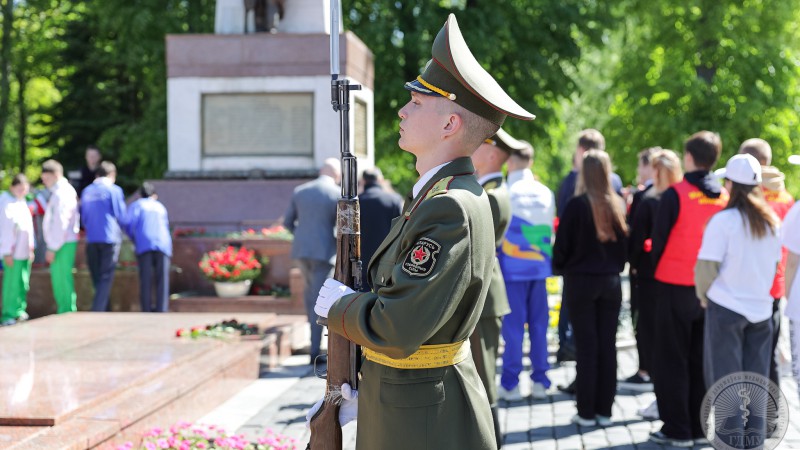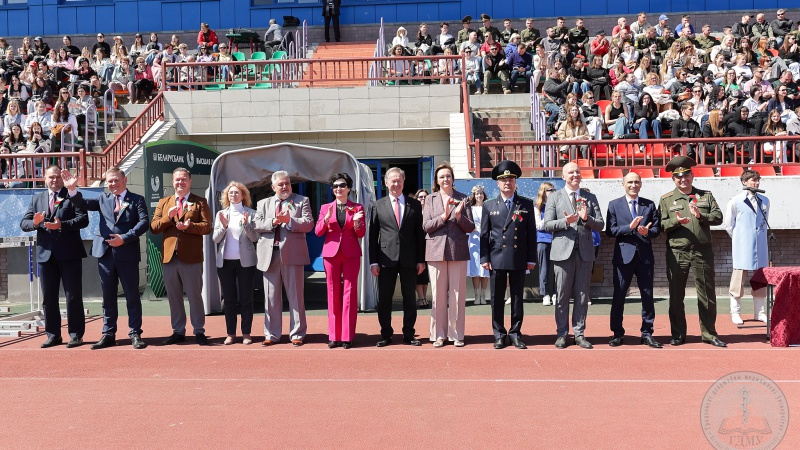 Заключительный день марафона начался с торжественного митинга и возложения цветов к Братской могиле советских воинов и партизан в парке Жилибера. Участие в нем приняла и делегация Гродненского медицинского университета во главе с проректором по международным связям и внебюджетной деятельности Виталием Владимировичем Воробьевым. Среди приглашенных гостей также были представители местной власти, руководство вузов, представители команд-участниц.