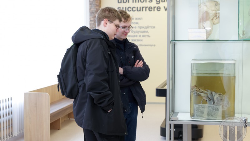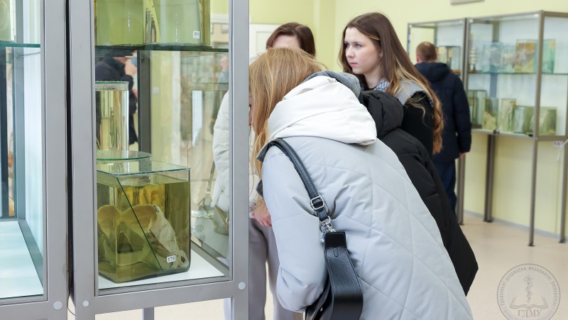 Также в рамках Единого дня открытых дверей абитуриенты смогли посетить анатомическую экспозицию «Гродненская кунсткамера». Здесь представлены многочисленные экспонаты – «сиамские близнецы», «русалки», «двуликий Янус», «циклопия», «анэнцефалы», плоды с многочисленными пороками развития. Подробнее о редких экспонатах рассказали на экскурсии.