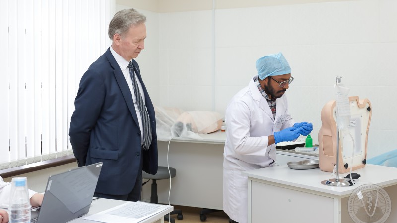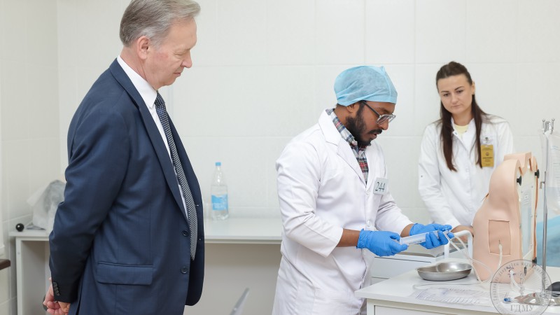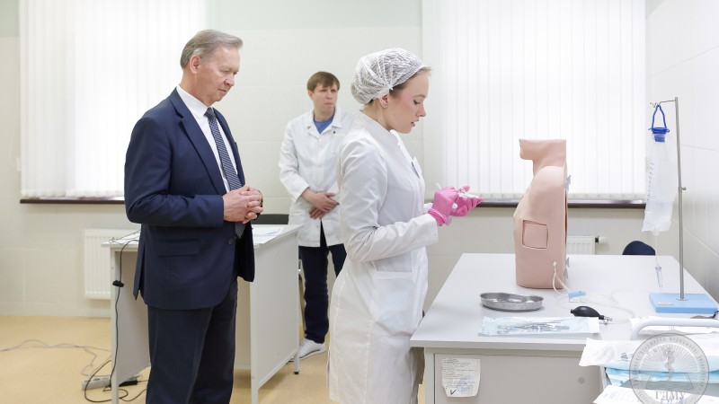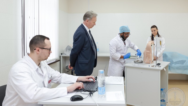 Ректор ГрГМУ Игорь Георгиевич Жук лично наблюдал за процессом сдачи итоговой аттестации выпускниками. Он отметил высокий уровень подготовки студентов, их профессионализм и уверенность в выполнении практических заданий.