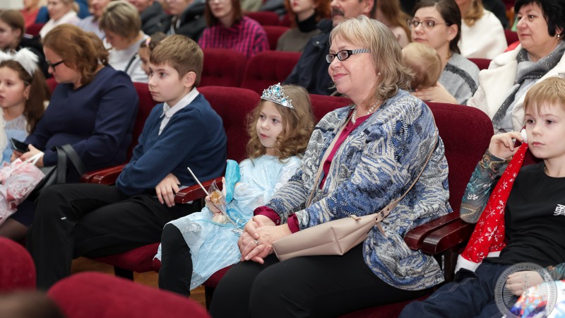 Музыкальное представление традиционно было наполнено сказочными интерактивными событиями. Приглашенные зрители – дети сотрудников и студентов, подопечные Молодежного крыла БСЖ, родители и гости вместе с артистами попали в сказки, где встретились с известными волшебными персонажами и отправились на поиски Деда Мороза и Снегурочки, которых похитили Баба Яга и Кикимора.