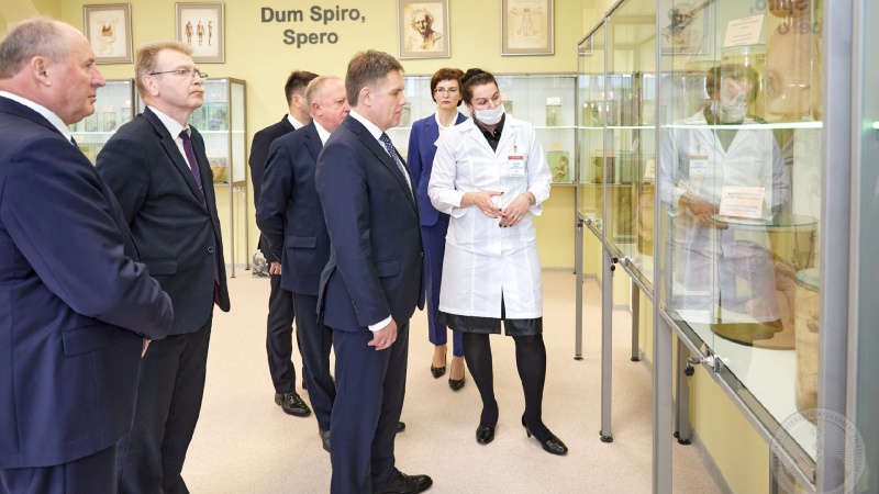 Также вице-премьер посетил анатомическую экспозицию ГрГМУ и посмотрел выступление студентов факультета иностранных учащихся.