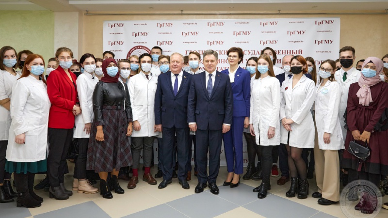 Участие в общении приняли заместитель председателя Гродненского облисполкома Виктор Францевич Пранюк, председатель Постоянной комиссии Совета Республики Национального собрания Республики Беларусь по образованию, науке, культуре и социальному развитию Виктор Андреевич Лискович, ректор Гродненского государственного медицинского университета Елена Николаевна Кроткова, члены ректората, деканы факультетов и студенты.