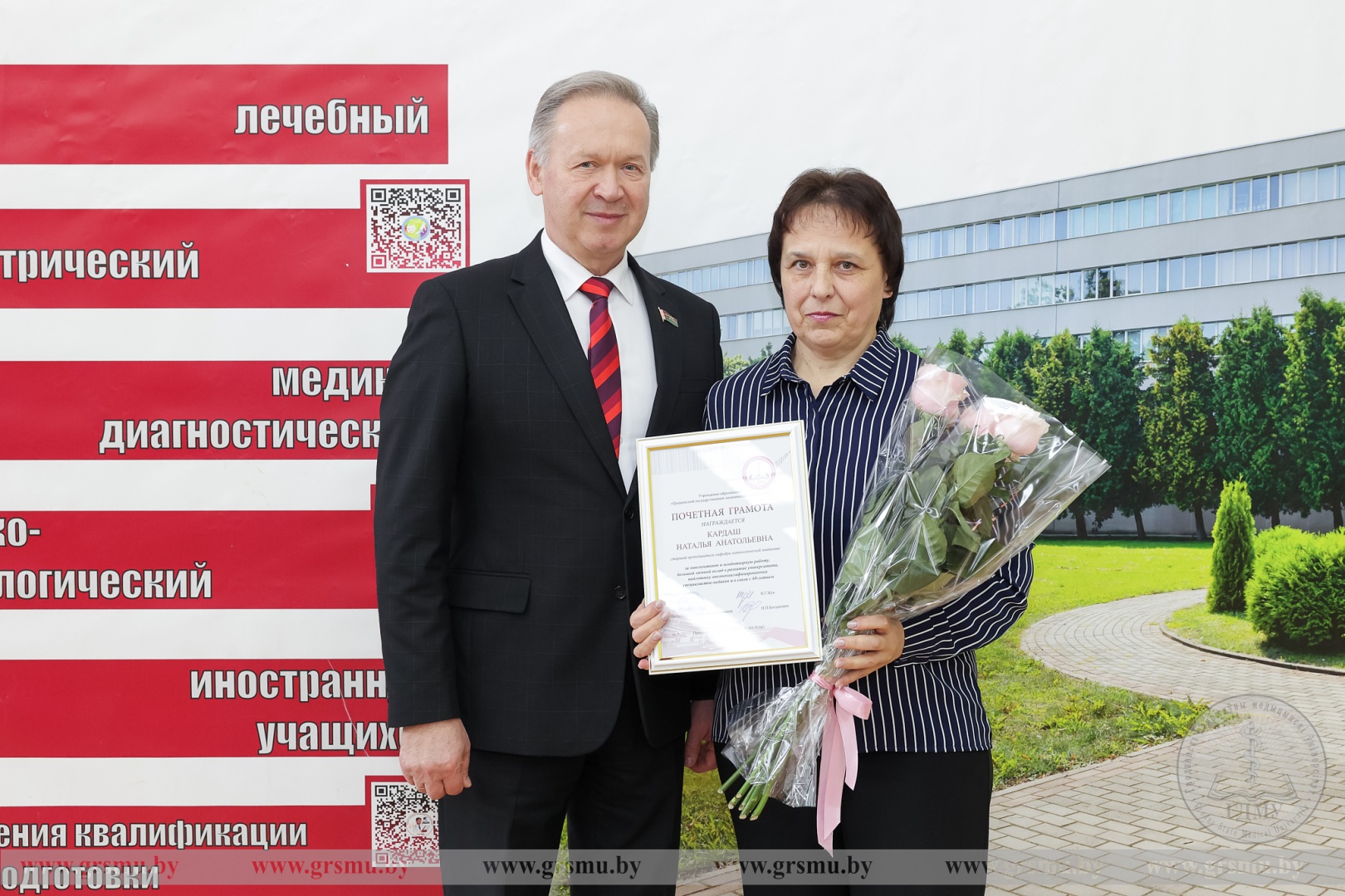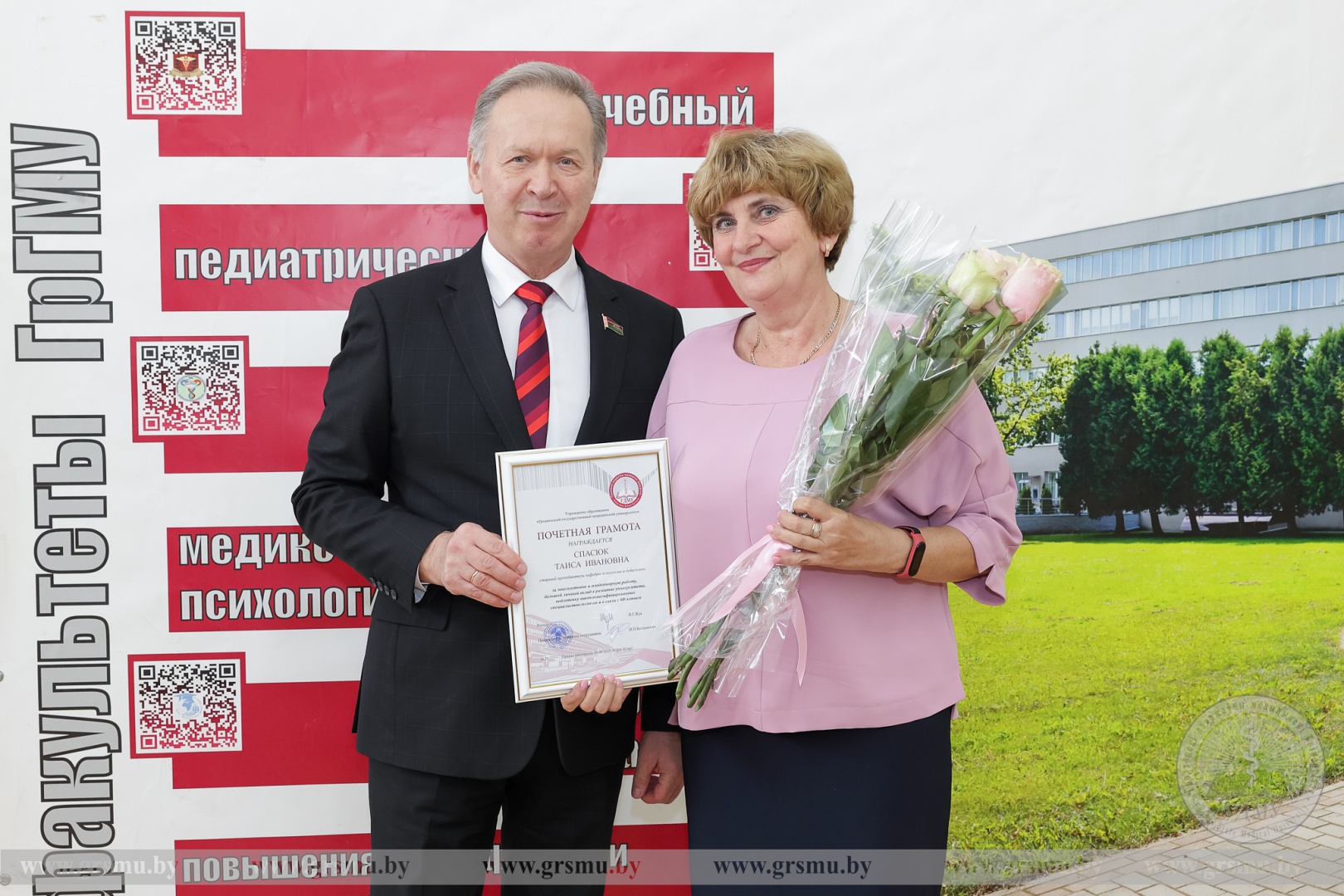 Почетные грамоты Гродненского государственного медицинского университета за многолетнюю плодотворную работу, большой личный вклад в развитие университета, подготовку высококвалифицированных специалистов-медиков и в связи с 60-летним юбилеем вручены старшему преподавателю кафедры патологической анатомии Наталье Анатольевне Кардаш и старшему преподавателю кафедры психологии и педагогики Таисе Ивановне Спасюк.