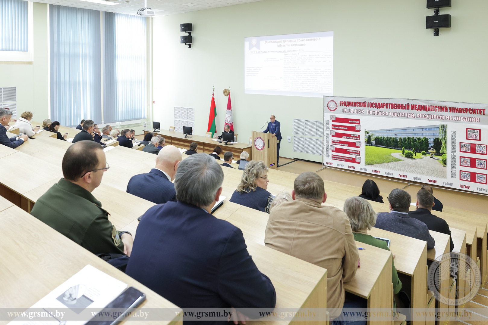 В повестке дня были рассмотрены ключевые вопросы развития университета. Первый вопрос – о результативности работы СМК и об удовлетворённости потребителей качеством деятельности учреждения образования «Гродненский государственный медицинский университет» – обозначил первый проректор ГрГМУ Андрей Викторович Болтач.