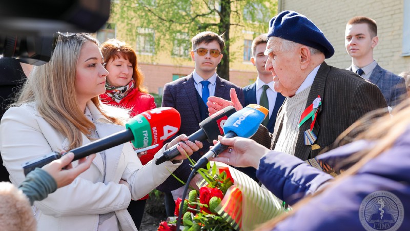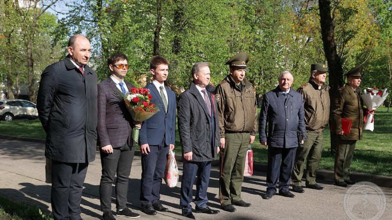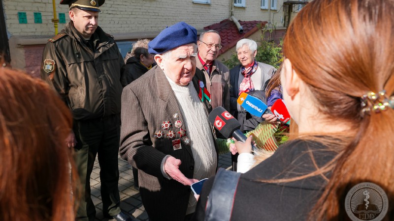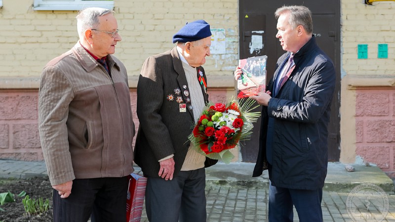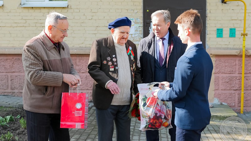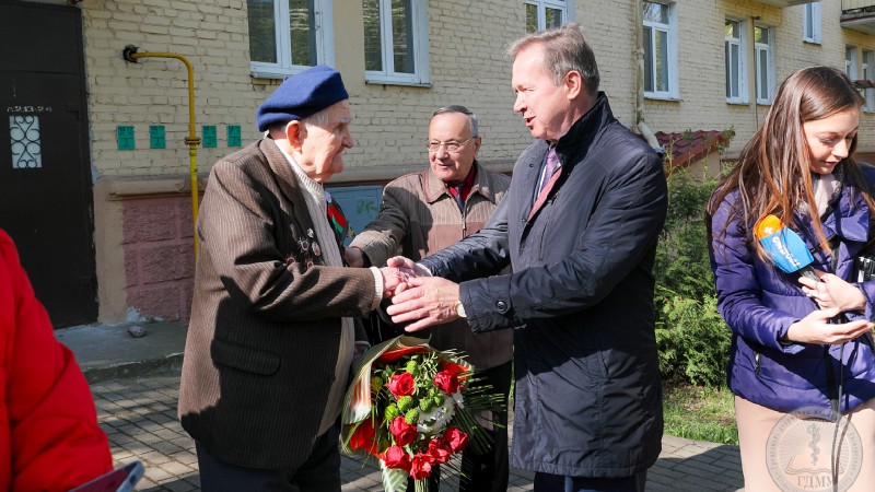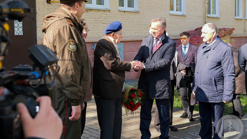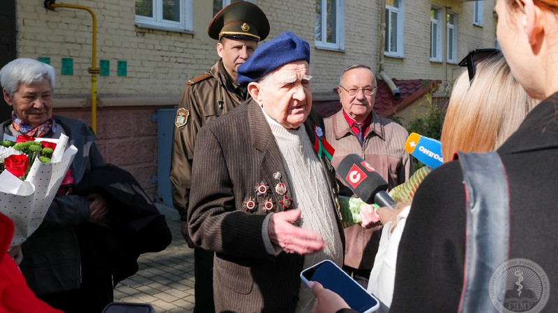 Поздравляли ветерана ректор университета Игорь Георгиевич Жук, проректор по воспитательной работе Богданович Игорь Петрович, председатель Совета ветеранов ГрГМУ, полковник м/с в отставке, к.м.н., доцент Ивашин Василий Михайлович, начальник учебной части – зам. начальника военной кафедры ГрГМУ, подполковник м/с Лескевич Казимир Люциянович и студенты 3 курса, члены военно-патриотического клуба университета.