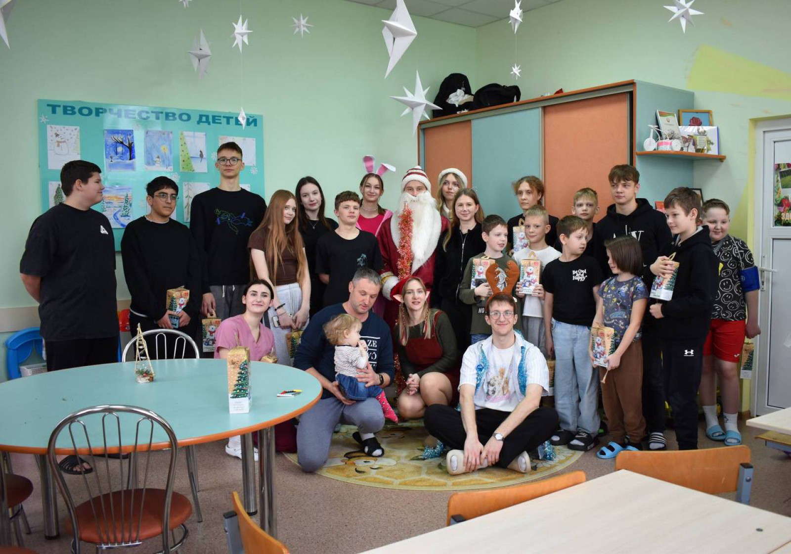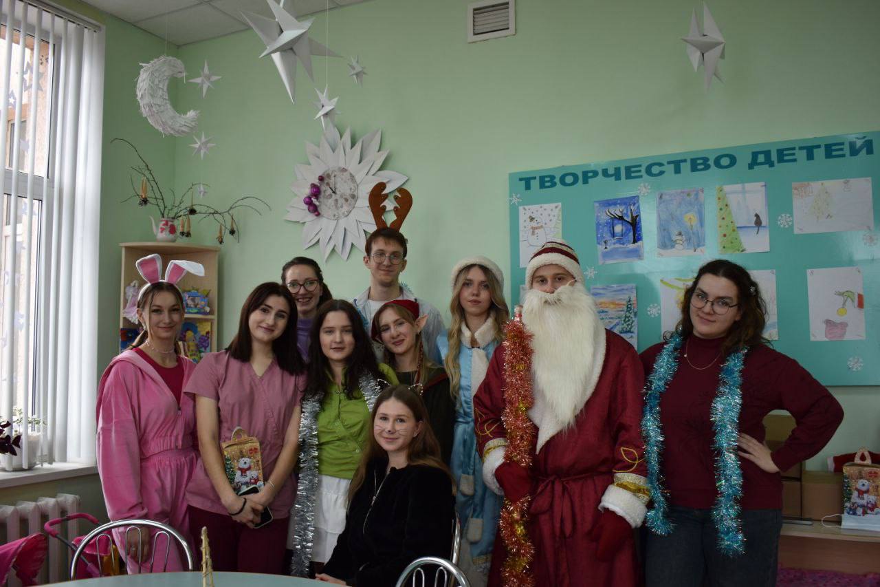23.12.25 в пятом отделении детской больницы волонтеры педиатрического факультета провели утренник с играми и конкурсами. Дети увлеченно участвовали в интерактивах: пантомиме, угадывании фильмов, мелодий и голосов мультгероев. Завершился праздник вручением подарков. Этот день принес малышам море позитива и улыбок. Большое спасибо БРСМ за предоставленные подарки!
