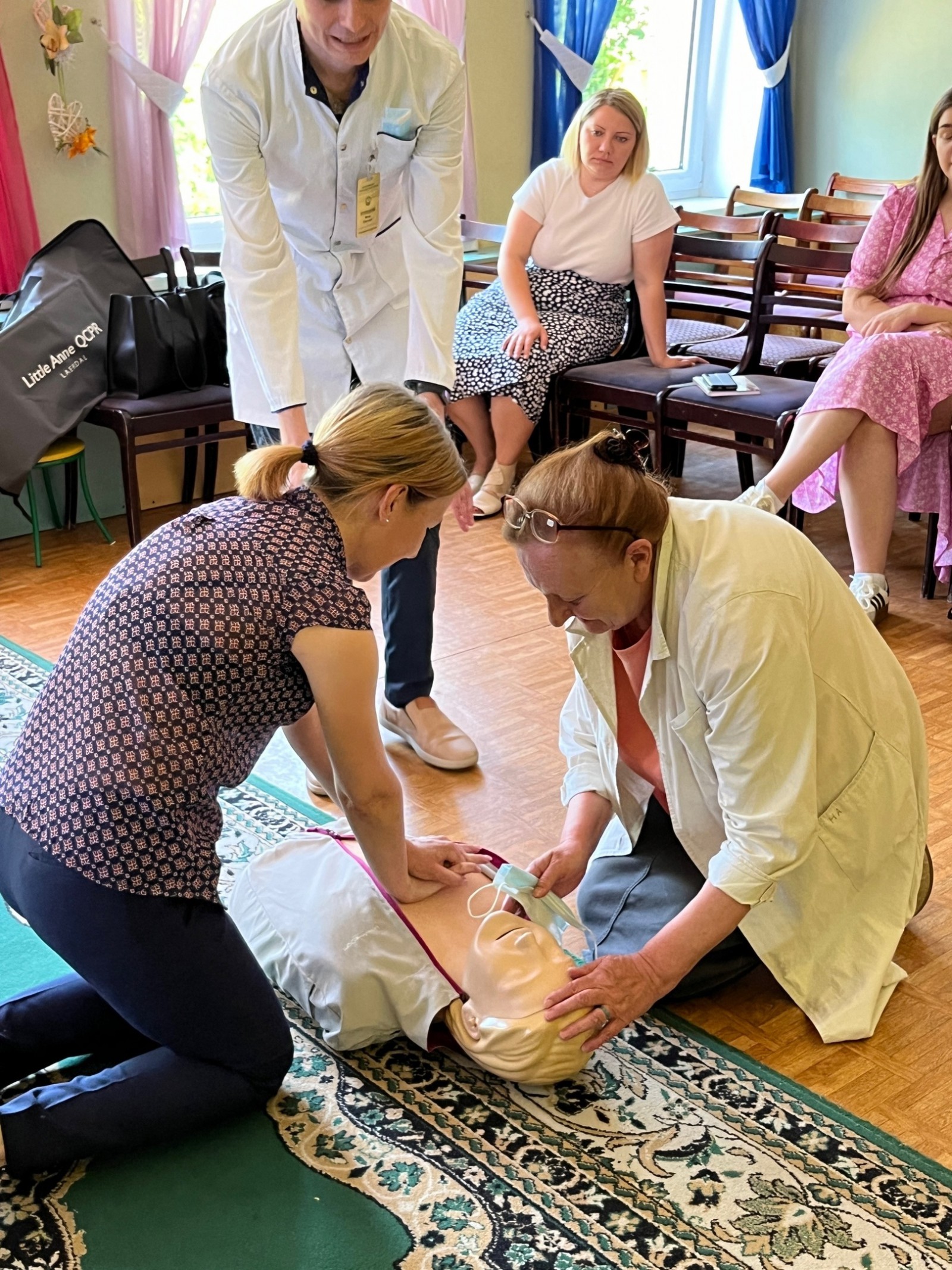 Были отработаны приемы удаления инородного тела, включая прием Геймлиха, выполнение сердечно-легочной реанимации как для взрослых, так и для детей разного возраста.