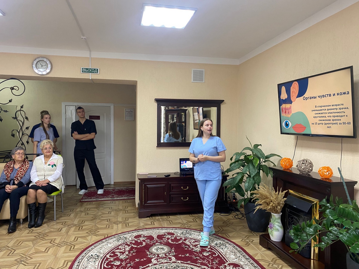 Встреча была посвящена крайне важной теме: «Анатомо-физиологические и психологические особенности лиц пожилого возраста». Будущие врачи не просто прочитали лекцию, а погрузили участников в увлекательный мир знаний о здоровье. Они доступно и тактично объяснили: