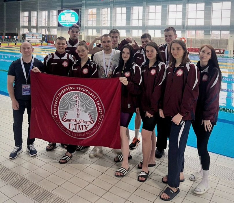 - Мужская сборная команда ГрГМУ – бронзовые призеры по плаванию в программе круглогодичной Спартакиады среди спортивных клубов вузов г. Гродно в 2023 – 2024 учебном году.