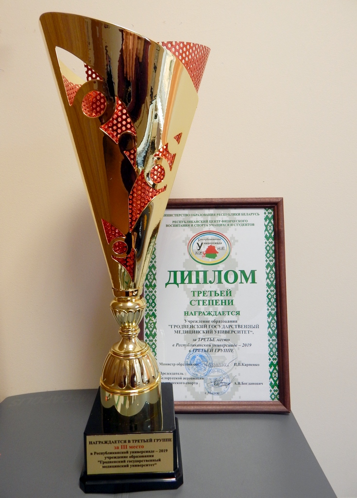По итогам Республиканской универсиады-2019 учреждение образования «Гродненский государственный медицинский университет» заняло III место в третьей подгруппе. На II месте – учреждение образования «Белорусский государственный аграрный технический университет», на I месте – межгосударственное образовательное учреждение высшего образования «Белорусско-Российский университет».