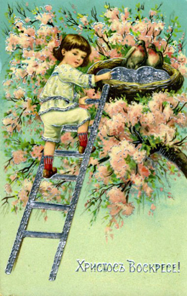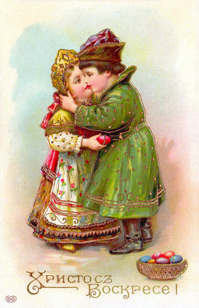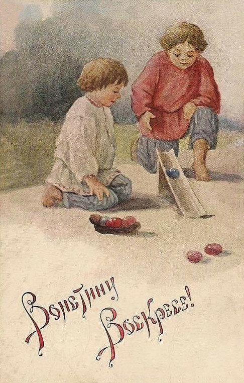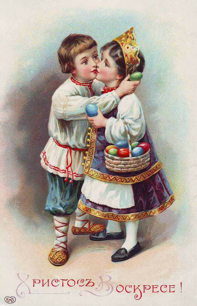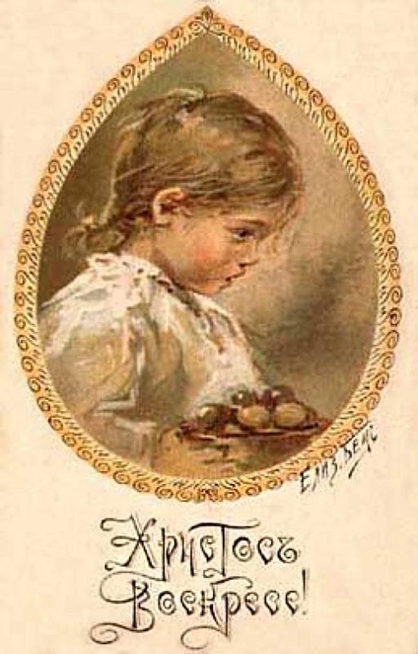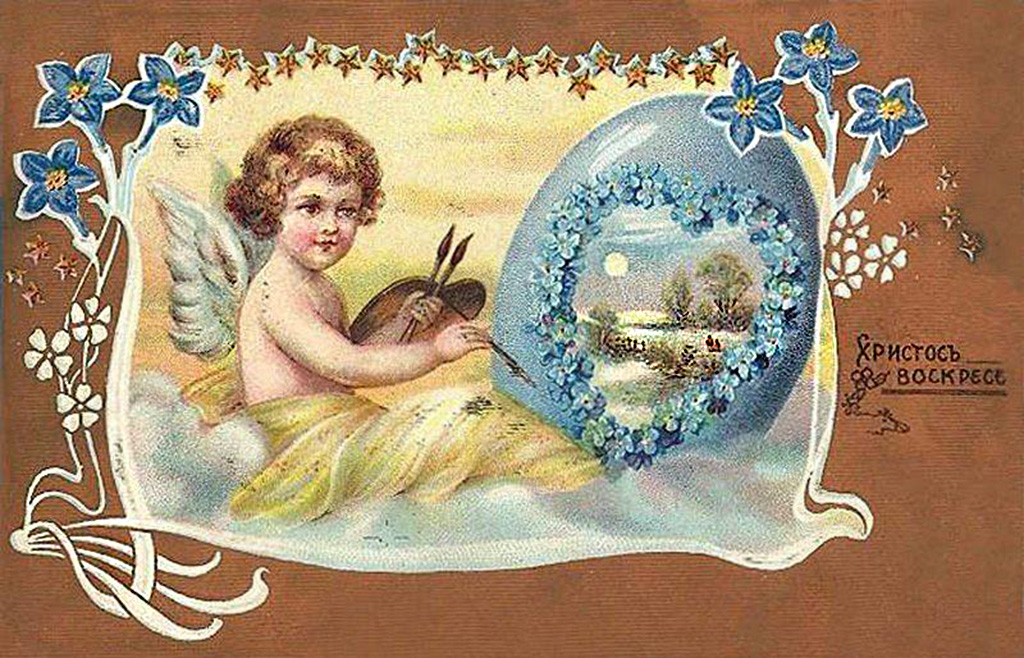 Пасхальные «поздравишки» иллюстрировали многие популярные художники. Это были картины Бориса Кустодиева, Николая Пимоненко, Мстислава Добужинского, Владимира Лебедева, Михаила Гермашева. Большой популярностью пользовались произведения Елизаветы Бем – художницы, имевшей свой особенный, неподражаемый стиль. Сюжеты дореволюционных открыток самые разнообразные. Живописцы создавали милые бесхитростные образы целующихся румяных детишек, ангелов, малышей с птицами и барашками, семей, собравшихся вокруг праздничного стола, любовные сценки и, само собой, не обходилось без самого главного атрибута Пасхи – крашеного яйца.