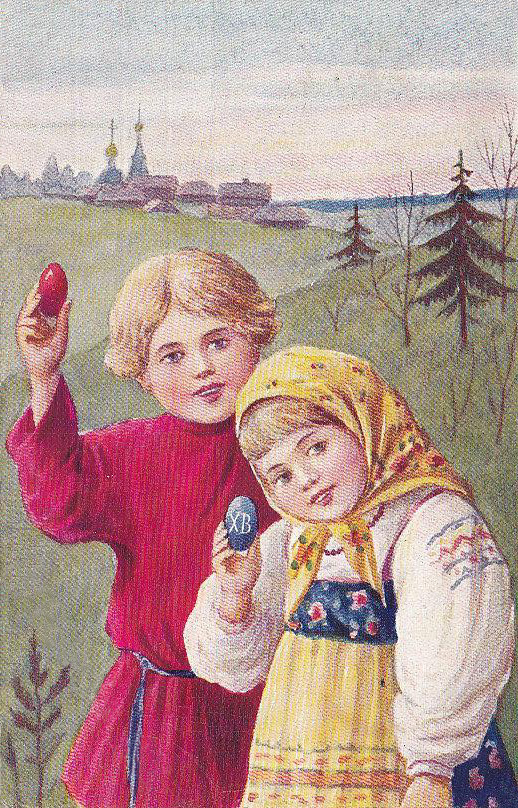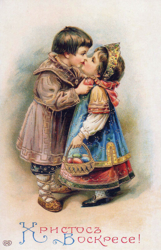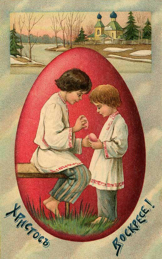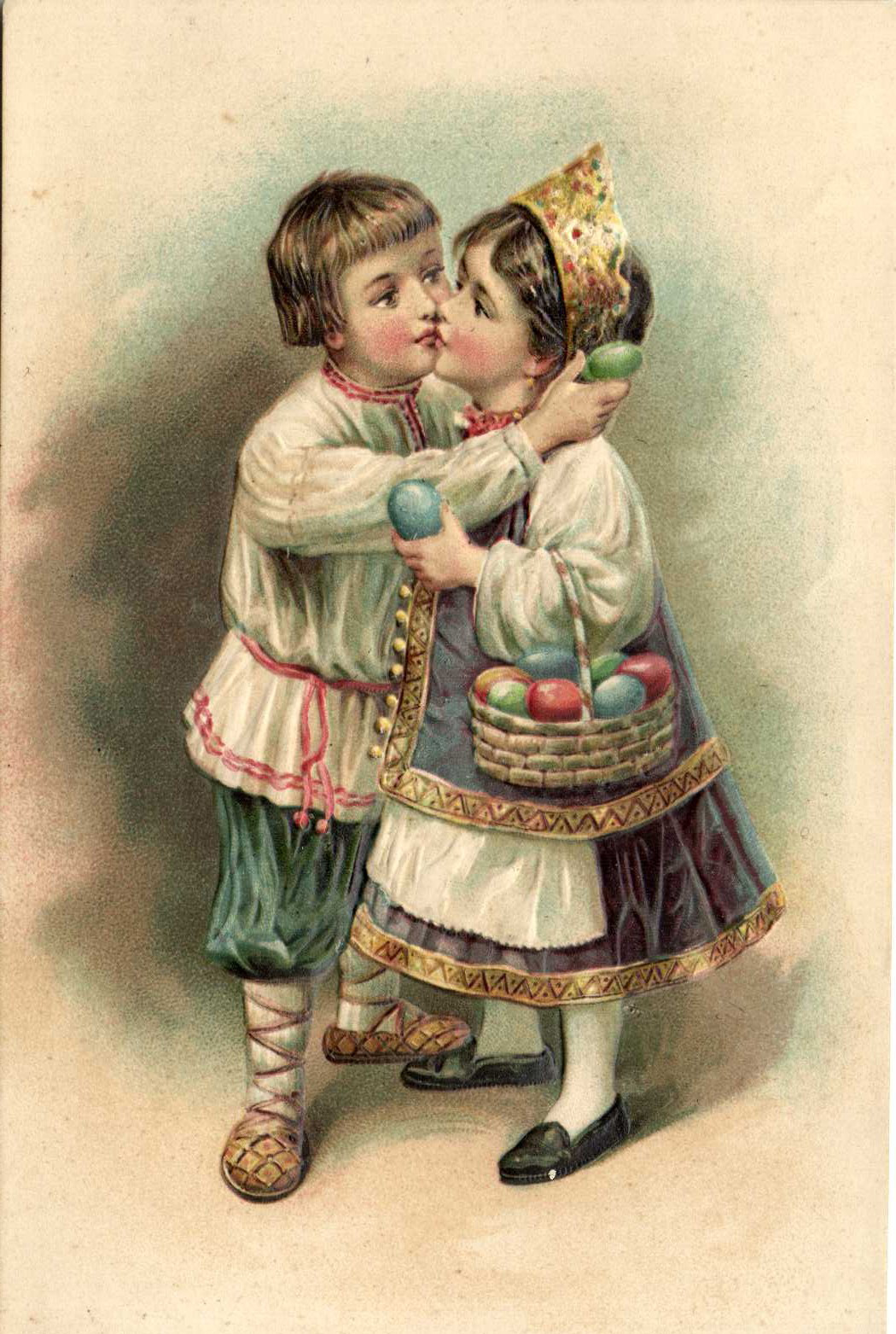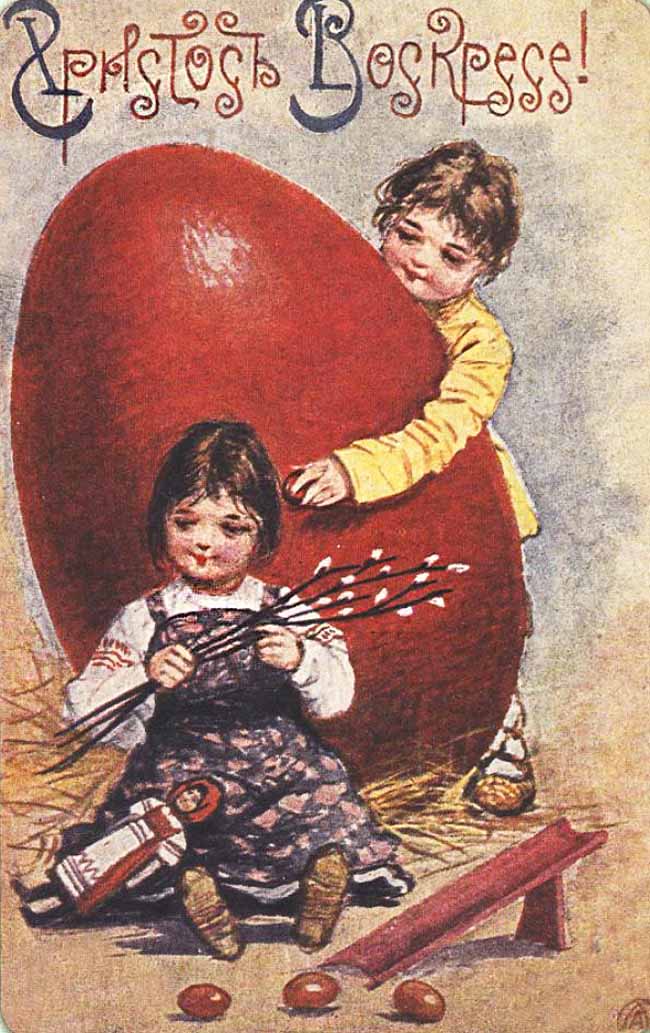 Пасхальные «поздравишки» иллюстрировали многие популярные художники. Это были картины Бориса Кустодиева, Николая Пимоненко, Мстислава Добужинского, Владимира Лебедева, Михаила Гермашева. Большой популярностью пользовались произведения Елизаветы Бем – художницы, имевшей свой особенный, неподражаемый стиль. Сюжеты дореволюционных открыток самые разнообразные. Живописцы создавали милые бесхитростные образы целующихся румяных детишек, ангелов, малышей с птицами и барашками, семей, собравшихся вокруг праздничного стола, любовные сценки и, само собой, не обходилось без самого главного атрибута Пасхи – крашеного яйца.
