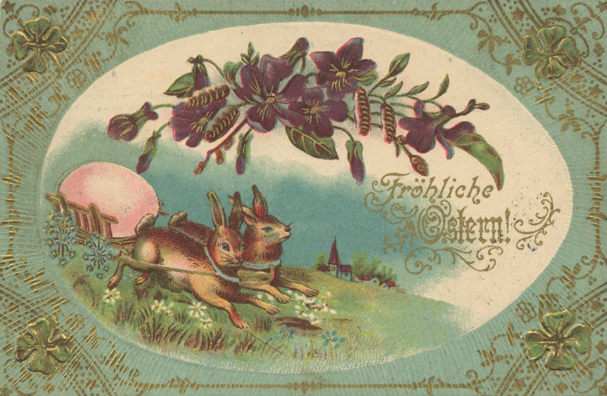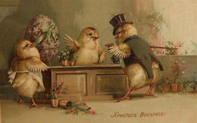 Пасхальная «поздравишка» стала таким же атрибутом праздника, как кулич, верба и крашеные яйца. И сколько бы открыток ни выпускалось в России до революции, их все равно не хватало. Поэтому открытки завозились и из других стран, чаще всего из Германии и Австрии. Только на этих картинках вместо золотых куполов православных храмов виднелись башенки протестантских кирх. Также на западных открытках часто рисовали цыплят и кроликов, что русскому человеку тогда было в диковинку.