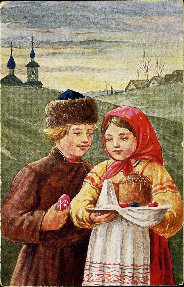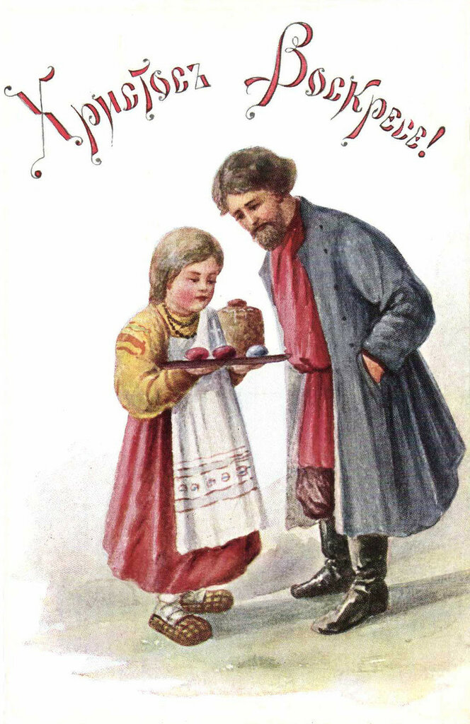 В Россию карточки начали завозить из Европы примерно в семидесятые годы XIX века. Тогда их называли открытыми письмами или «поздравишками», и они еще были большой редкостью. Одни из самых первых отечественных открыток создал писатель и историк Николай Карамзин, который увлекался живописью. В 1897 году «Общество Святой Евгении» выпустило первые пасхальные почтовые открытки с акварелями на весенние сюжеты. Открытки продавались на почте, в книжных магазинах и на станционных лавках железной дороги. Стоили дороговато – десять копеек за штуку (на тот же гривенник тогда можно было купить чуть более килограмма белого хлеба). Но публика полюбила эти красочные картинки с местом для письма или слов поздравлений, что они стали пользоваться ажиотажным спросом. Продажа пасхальных открыток оказалась делом коммерчески выгодным и быстро окупаемым. Так появились первые коллекционеры открыток, первые альбомы для их рассматривания.