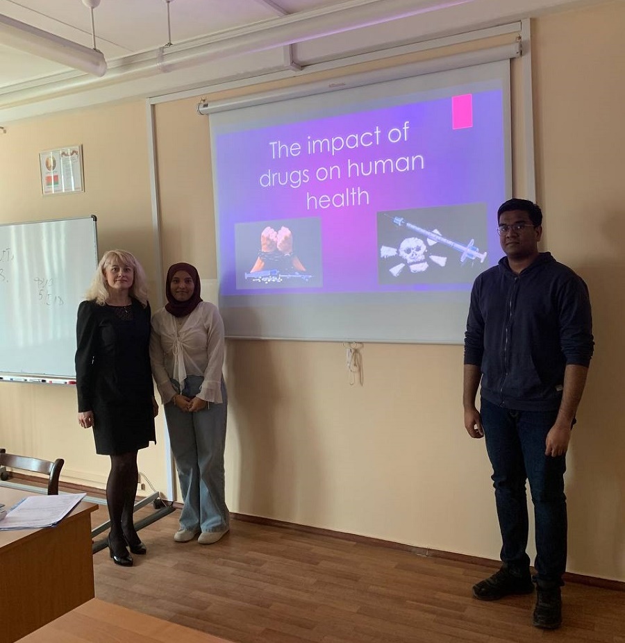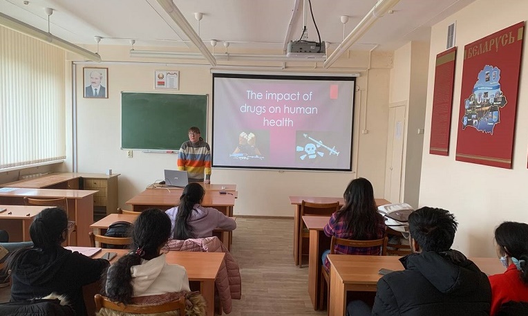 26 февраля 2025 года старшими преподавателями Мацкевич М.А. и Шевчик-Гирис Е.М. в группах 6 и 11 факультета иностранных учащихся было проведено воспитательное мероприятие в рамках проведения недели профилактики наркомании, наркопотребления и траффикинга под девизом «За мир без иллюзий и зависимостей!», приуроченной к Международному дню борьбы с наркоманией и наркобизнесом.