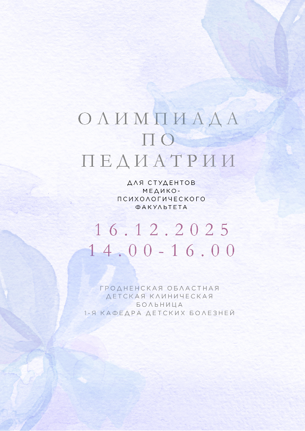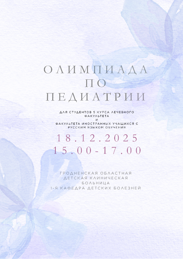 С 16.12.2025 по 18.12.2025 на 1-й кафедре детских болезней будет проводится олимпиада по дисциплине «Педиатрия» для студентов медико-психологического факультета, 5 курса иностранных учащихся с русским и английским языком обучения, 5 курса лечебного факультета.