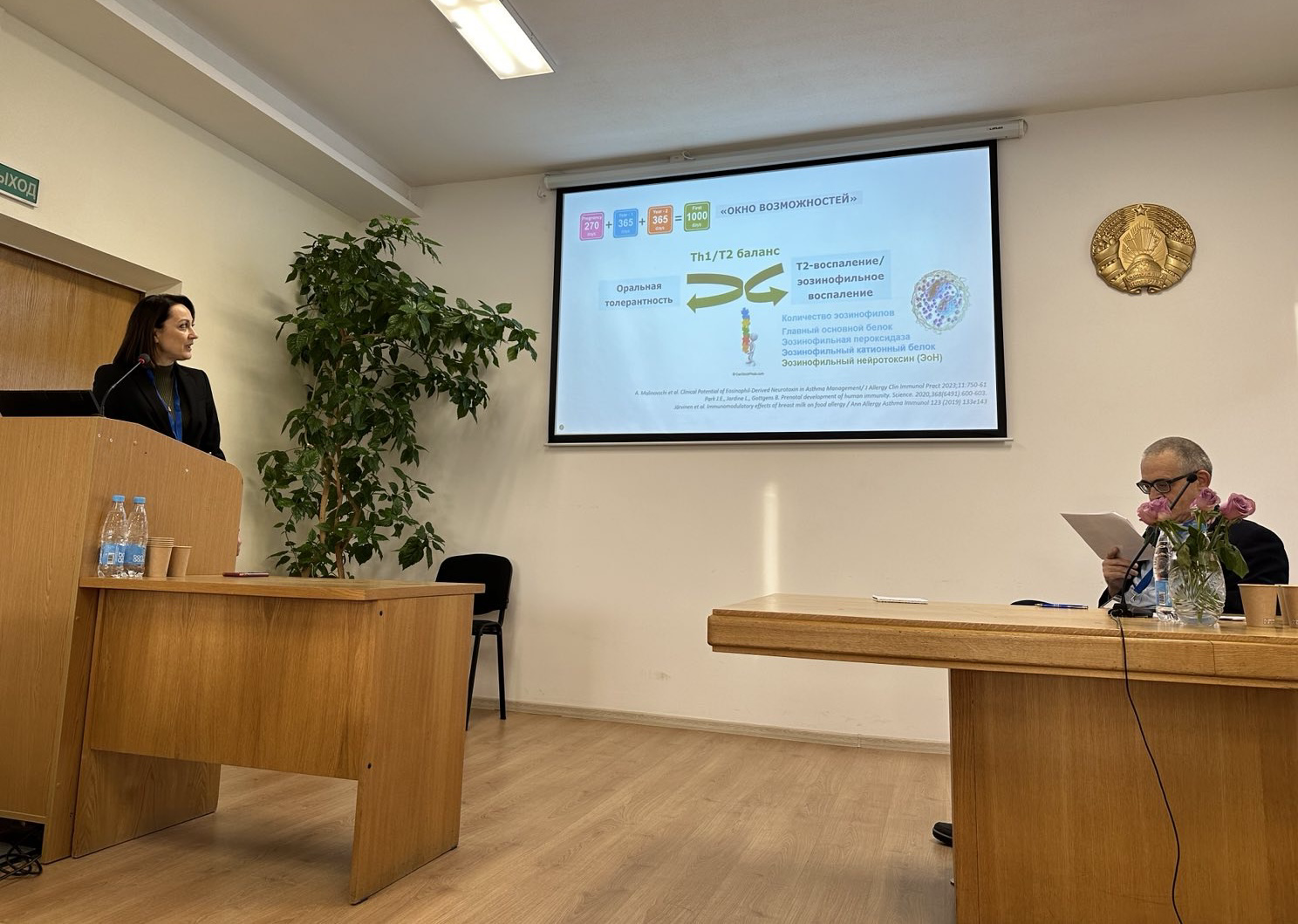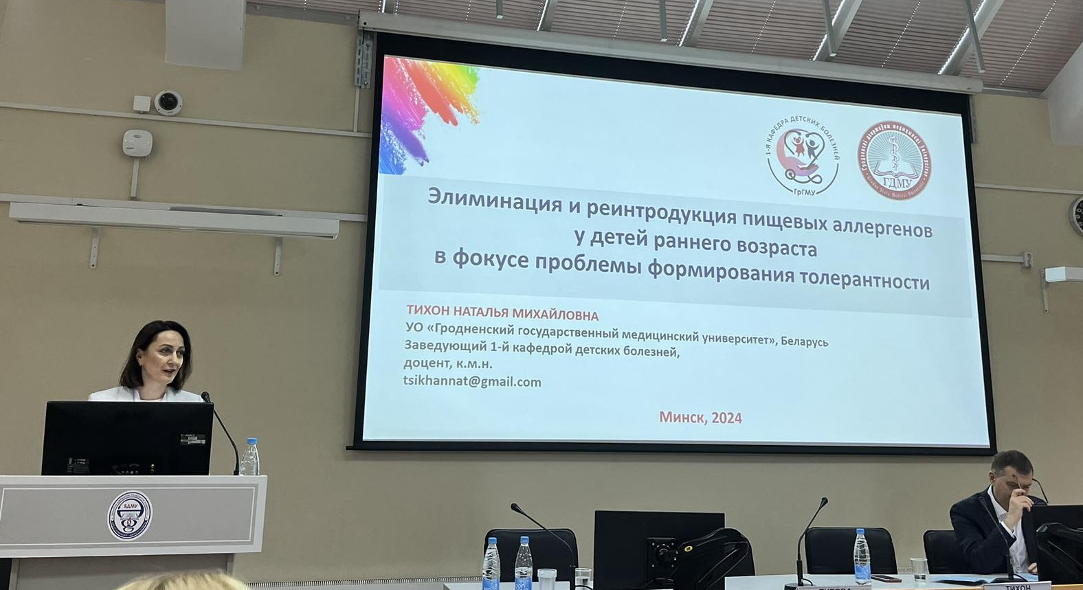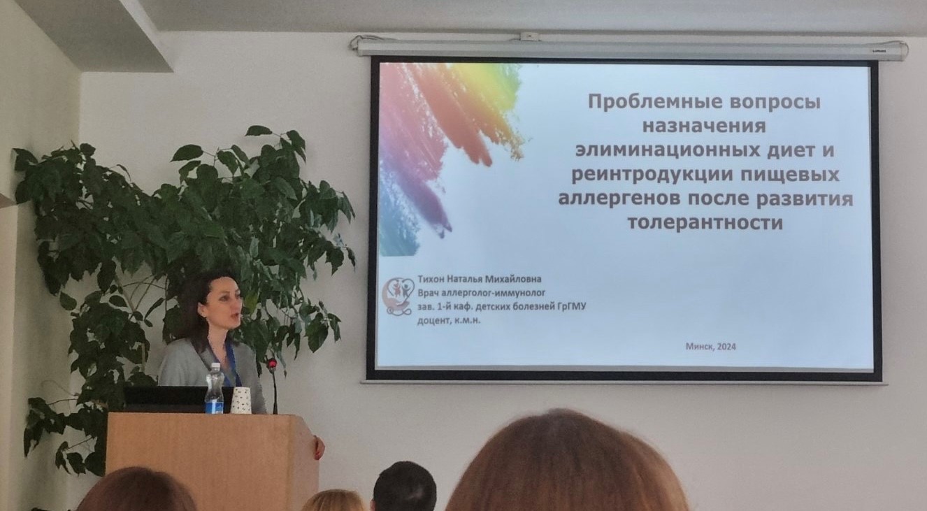 5 марта 2024 г. в Институте биофизики и клеточной инженерии НАН Беларуси в гибридном формате прошел научно-практический семинар с международным участием «Экспериментальная и практическая аллергология». Был сделан 21 доклад на актуальные темы аллергологии. Среди докладчиков - специалисты из всех регионов Беларуси, а также - ведущие аллергологи г. Москва. Заведующий кафедрой Тихон Наталья Михайловна выступила с докладом «Проблемные вопросы назначения элиминационных диет и реинтродукции пищевых аллергенов после развития толерантности». Видео доклада доступно на you-tube канале Института биофизики и клеточной инженерии НАН Беларуси.