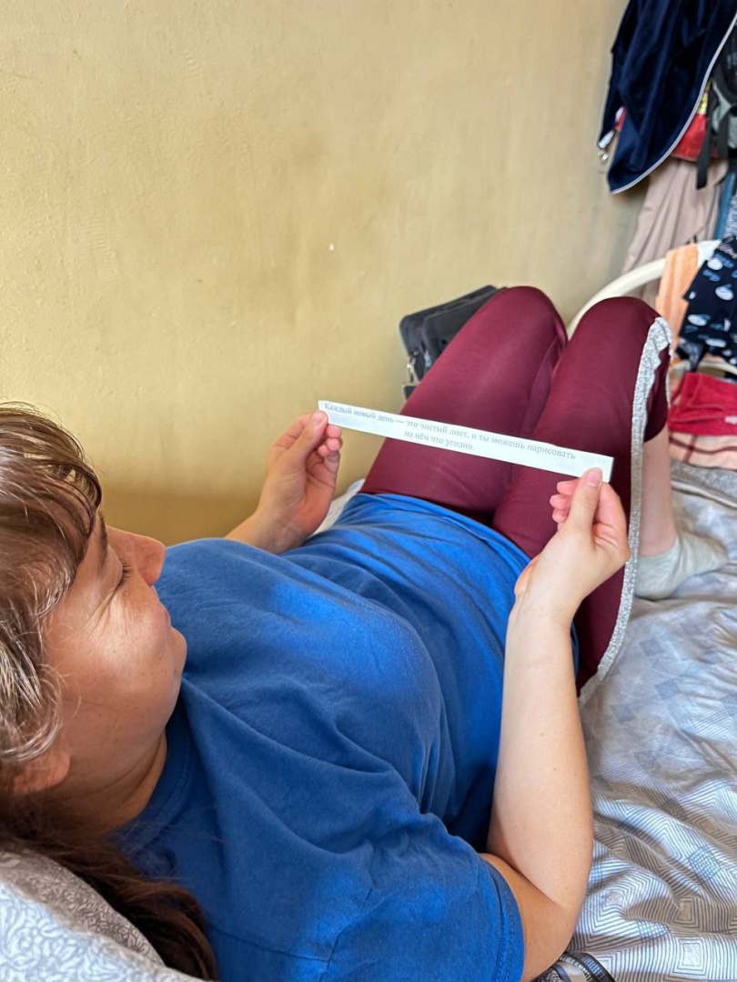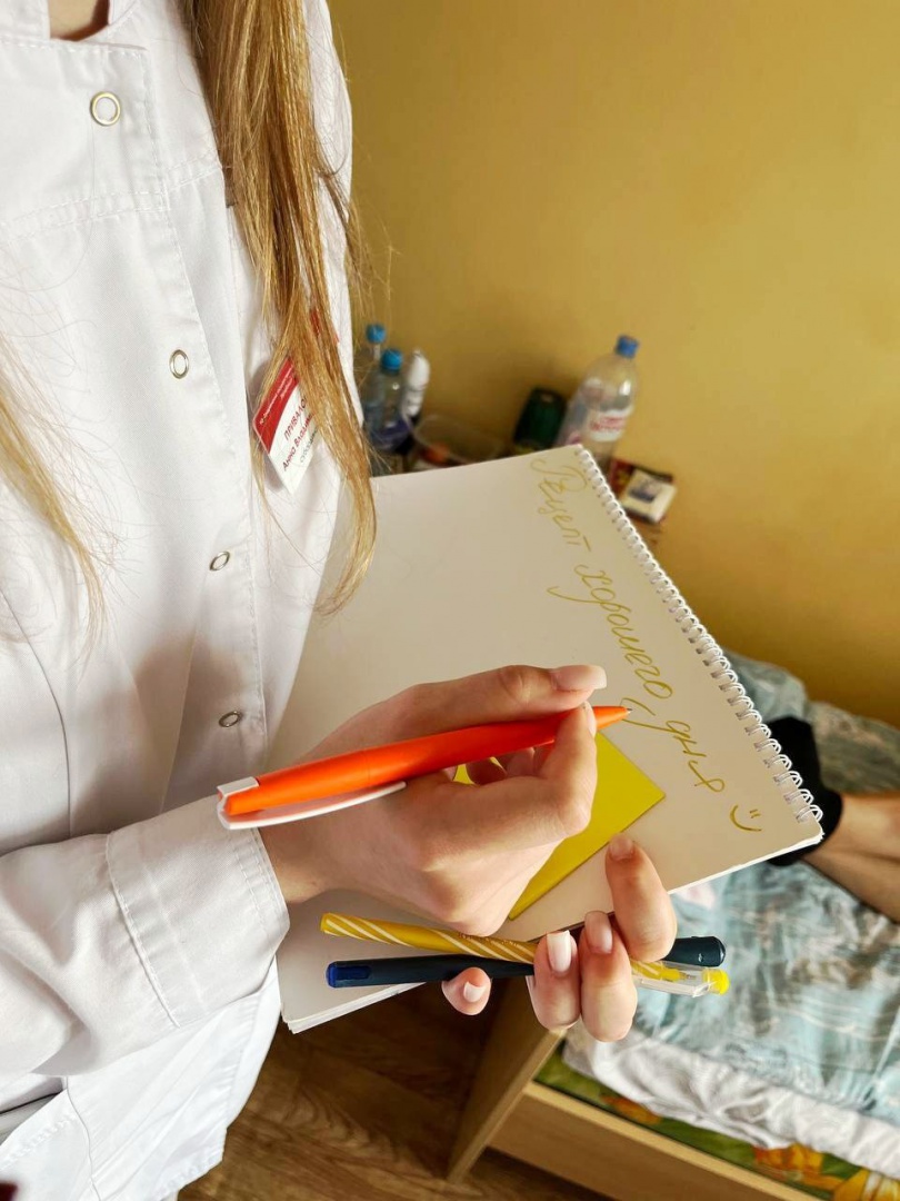 Пациенты и их родственники, осуществляющие уход, вытягивали букву, на которую нужно было назвать минимум три слова, которые поднимают им настроение, записки с мотивационными высказываниями, делились своими рецептами хорошего дня и поддержания «боевого духа» в критических ситуациях.