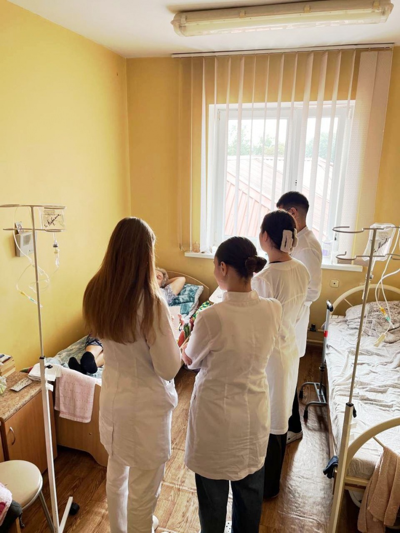 Далее студенты в сопровождении преподавателя посетили пациентов отделений медицинской реабилитации УЗ «ГОКБ МР» с подготовленной ими акцией.