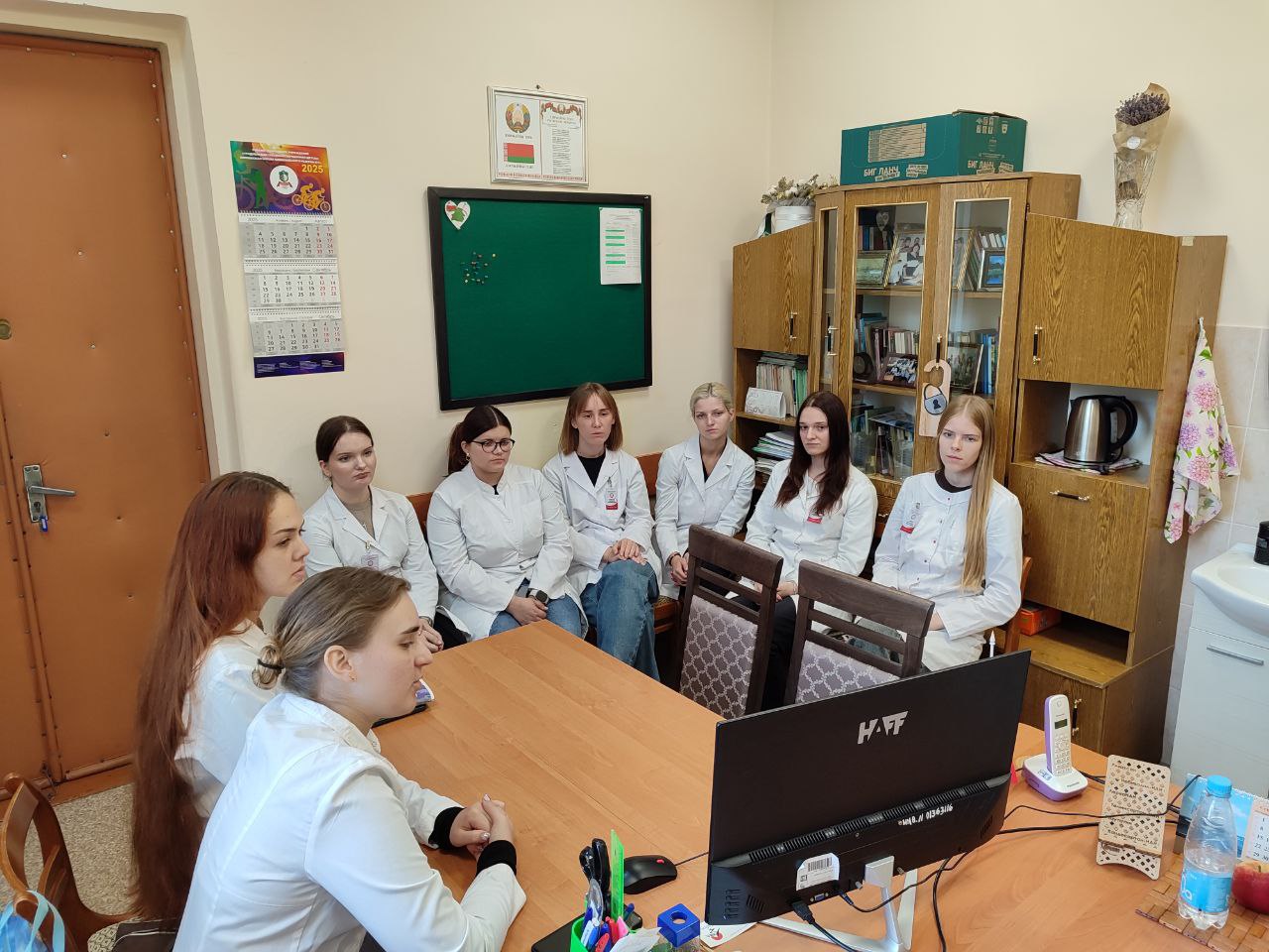 На занятии присутствовали д.м.н., профессор Пирогова Л.А., к.м.н., доцент Василевский С.С., методист учебно-методического отдела Рогашко Н. А., начальник отдела воспитательной работы с молодежью Михеева А. Л., заведующий социально-педагогического и психологического сектора Михно Н. Л.