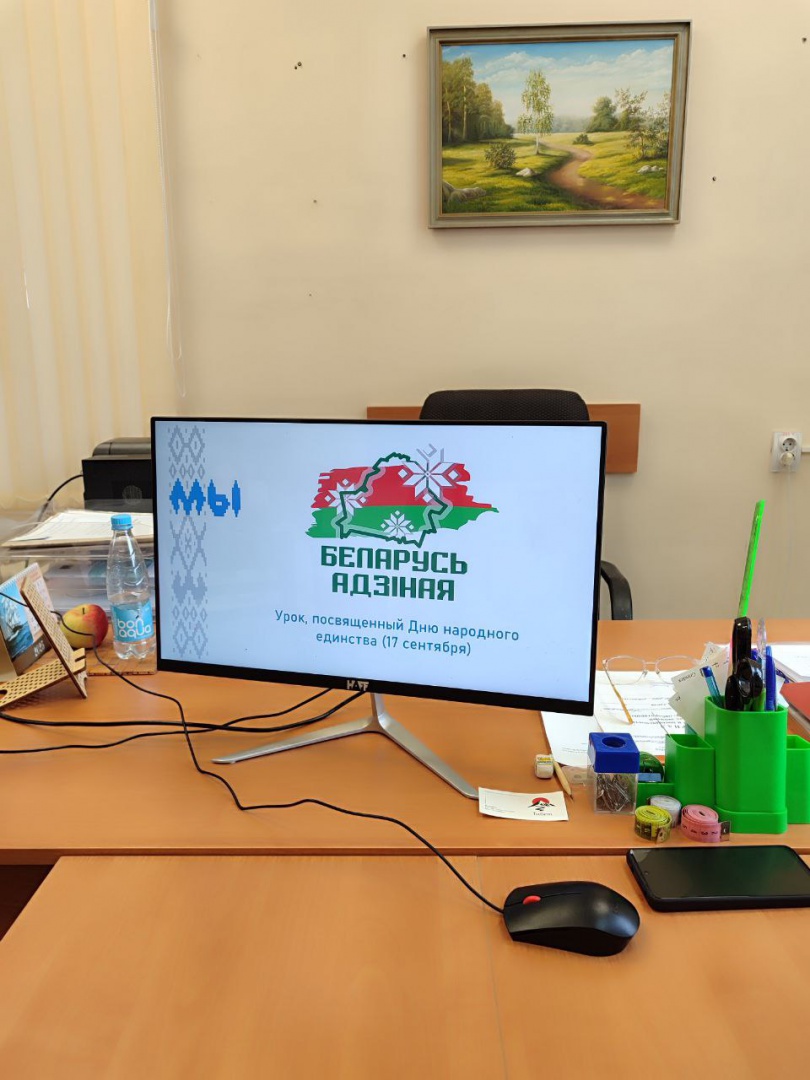 Студентам была продемонстрирована презентация «МЫ – Беларусь адзiная» с последующим обсуждением исторического значения воссоединения белорусского народа.
