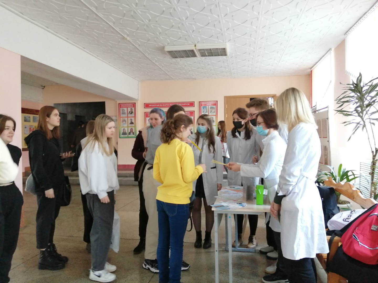 21.03.2023 г. студенты педиатрического факультета 2 курса, 8 гр. Борщевская Т. А., Булавина Н. С. приняли активное участие в формировании навыков здорового образа жизни среди учащихся на базе ГУО "Средняя школа 32 г. Гродно".