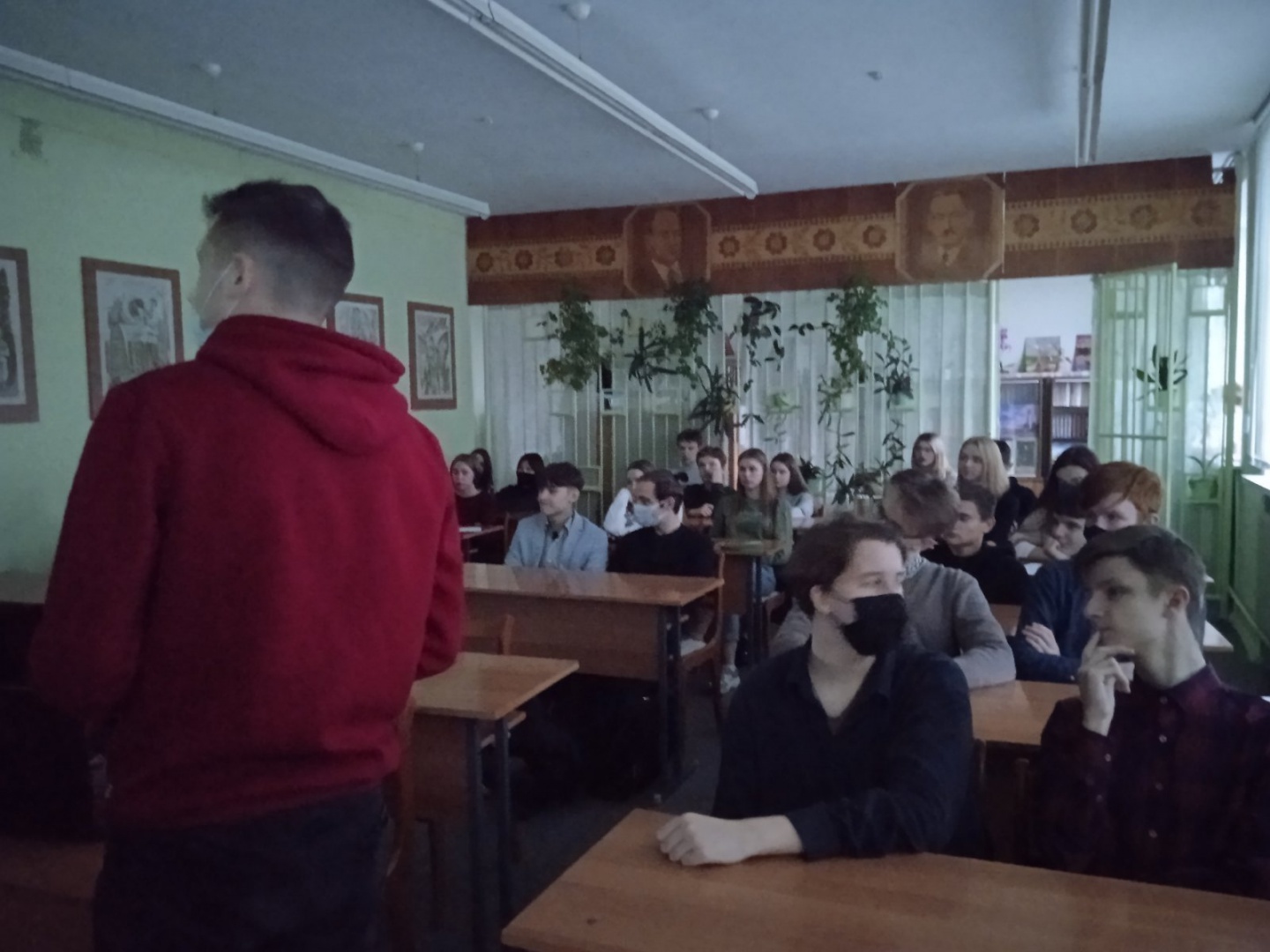 Студенты 3 курса МПФ 01.12.2024 г. провели лекцию в ГУО "Гимназия №10 г. Гродно" по теме "Отрицательное влияние гаджетов на орган зрения".