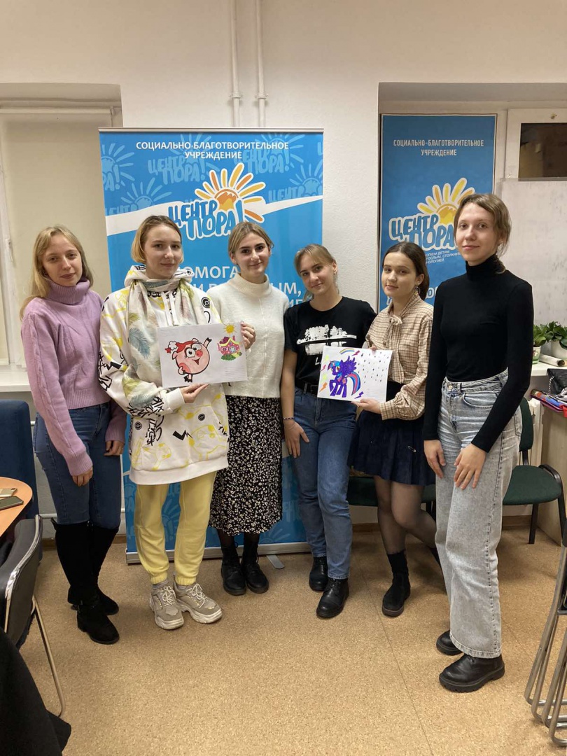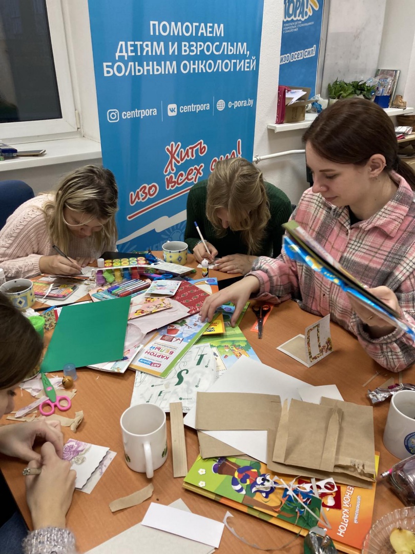 19.10.2022, 16.11.2022 г., 07.12.2022 г. - посещение волонтерского центра «Пора» студентами, подготовка открыток с поздравлениями онкобольным детям.