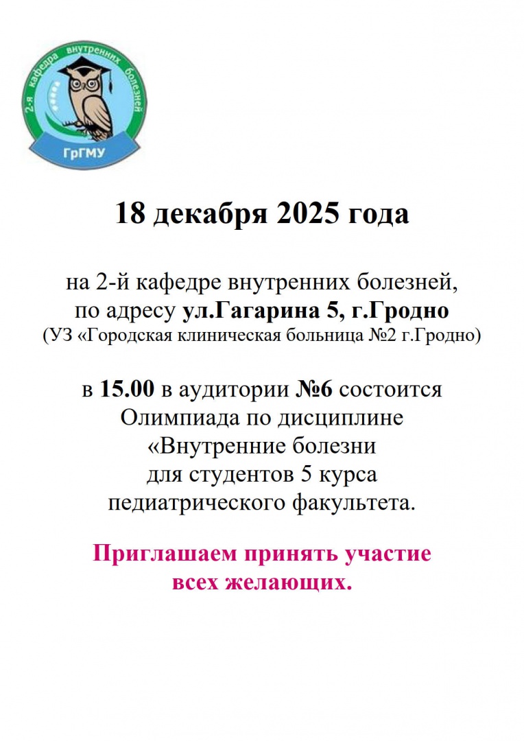 Университет Структура Кафедры 2-я кафедра внутренних болезней Новости и объявления