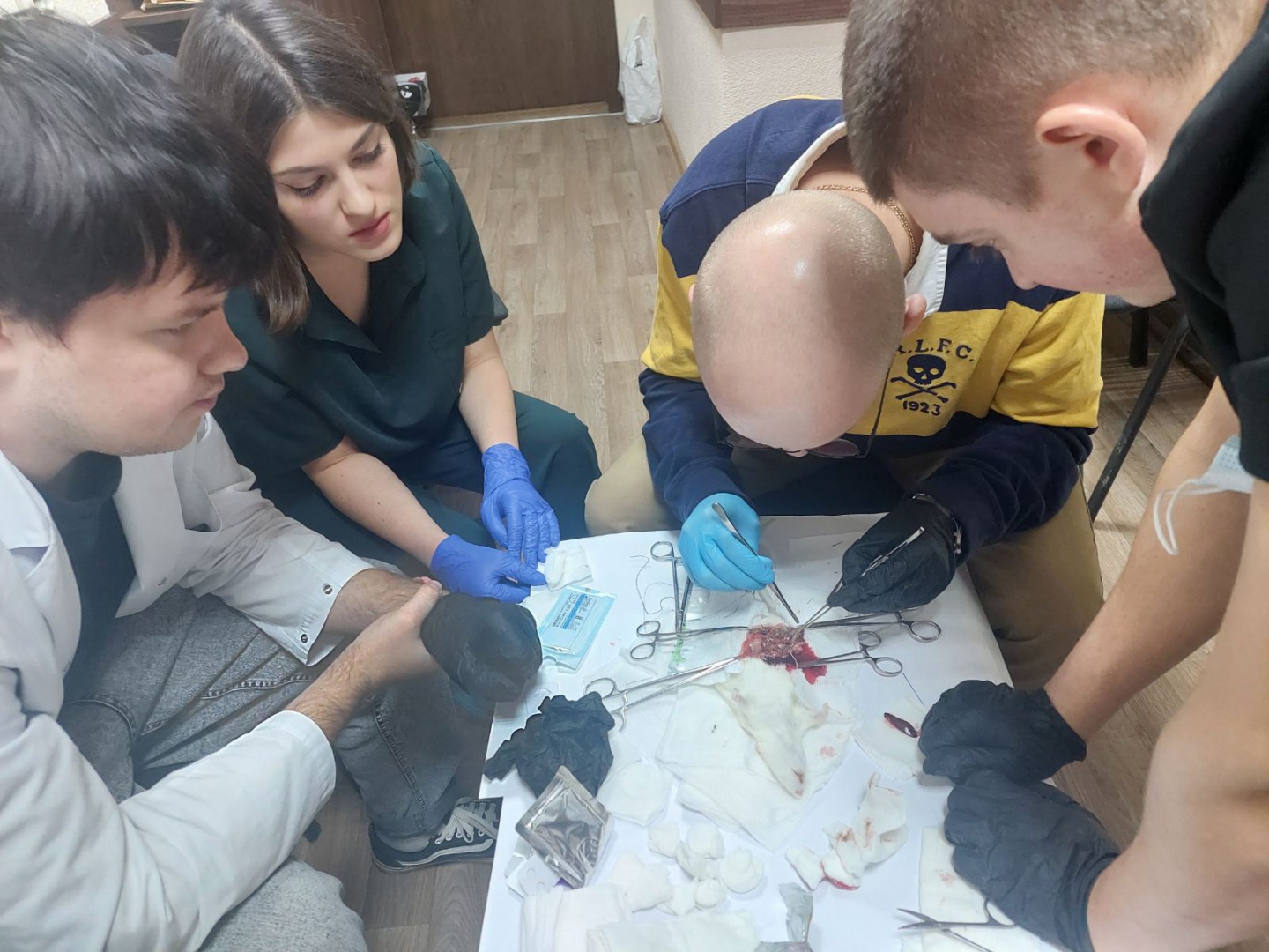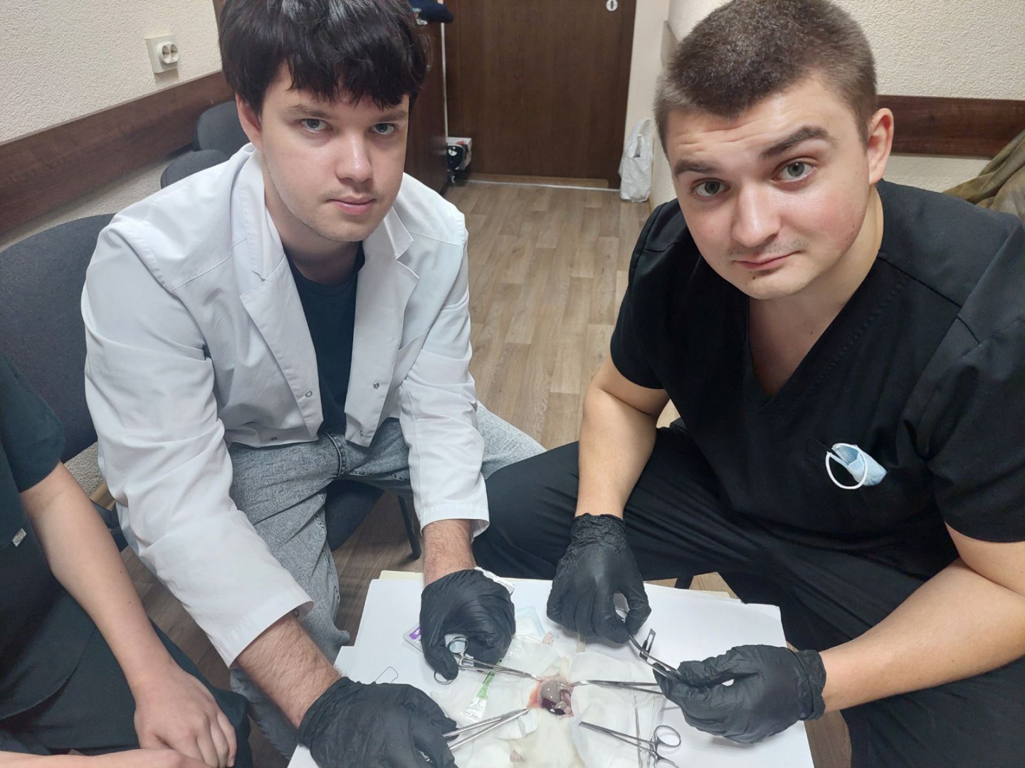 Во втором разделе заседания студенты 6 курса 23 группы Токть Г.А. и Кременовский П.К. финалисты Республиканского конкурса студентов медицинских вузов РБ и РФ, проходившем в ноябре 2023 г. в г. Витебске, продемонстрировали высокое качество наложения тонкокишечных и толстокишечных анастомозов на макропрепаратах кишечника свиньи. Студенты рассказали о длительной практической подготовке к конкурсу, о самых позитивных впечатлениях от общения со своими сверстниками-коллегами.