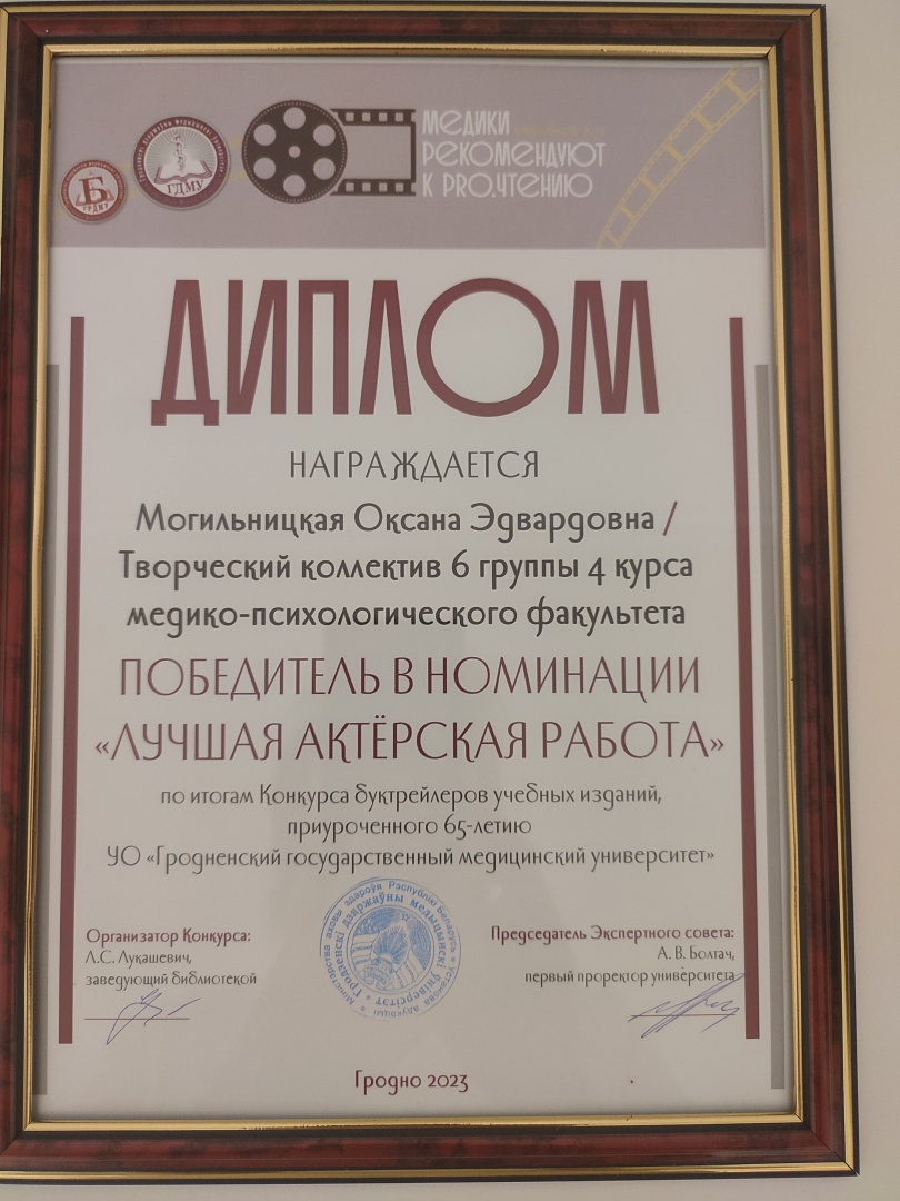 «Гродзенская праўда» совместно с Октябрьским районным отделением Белорусской партии «Белая Русь» к 80-летию Великой Победы запустила проект «Правнуки Победы», в которой принял участие внук старшего преподавателя кафедры акушерства и гинекологии Семенцовой С.В. - Николас Абади. Он написал письмо прадеду Рудько В.С., который воевал на полях сражений в Великой Отечественной войне.