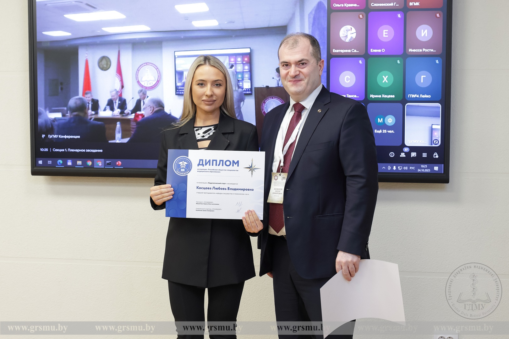 Доцент кафедры акушерства и гинекологии, к.м.н. А.Р. Плоцкий и старший преподаватель кафедры акушерства и гинекологии, к.м.н. Л.В. Косцова 24 октября 2025 года приняли участие в Республиканской научно-практической конференции с международным участием «Медицинское образование в Беларуси: вековые традиции и современность». Мероприятие приурочено к 250-летию со дня основания Гродненской медицинской академии.