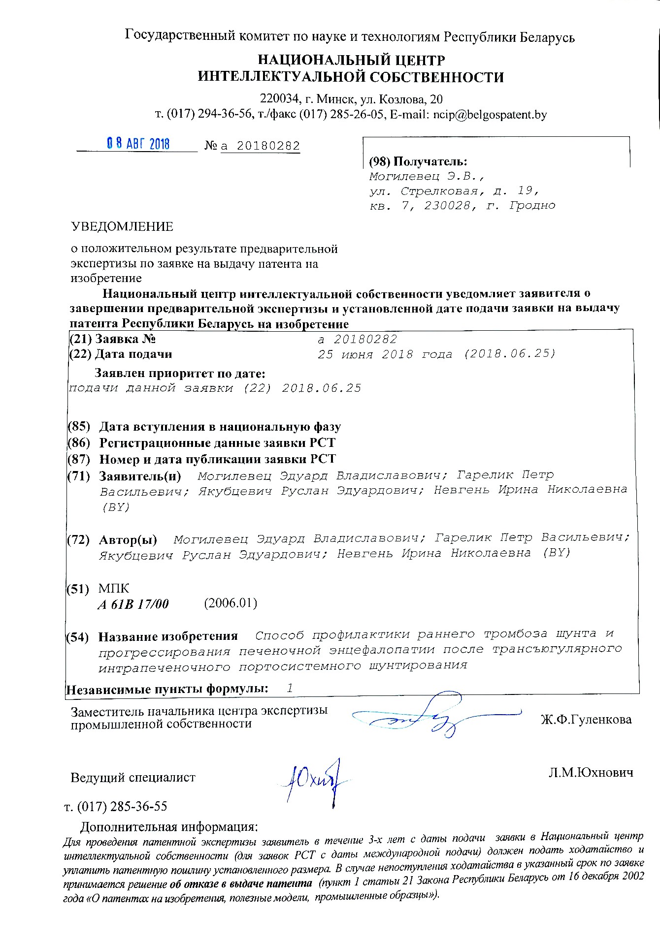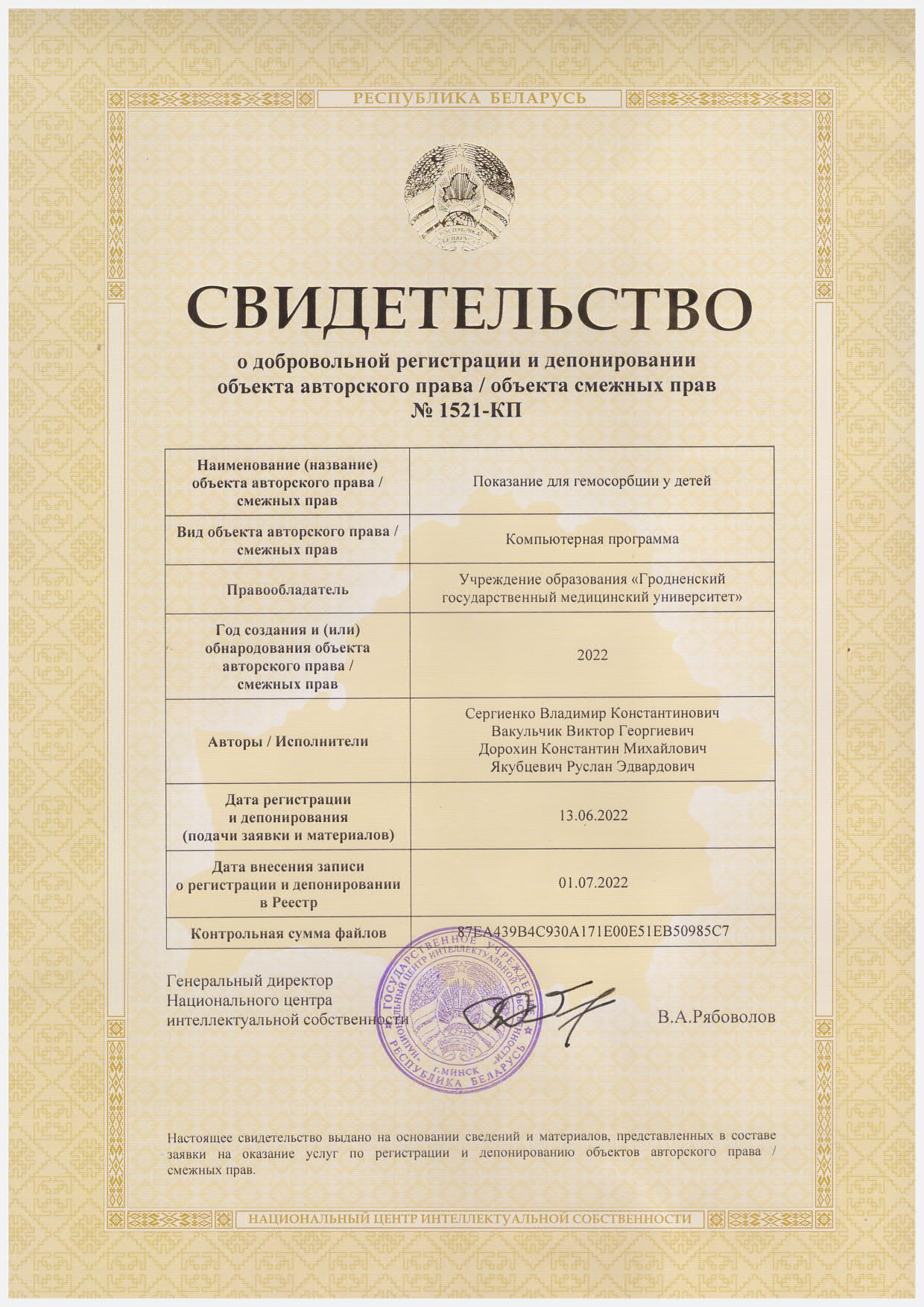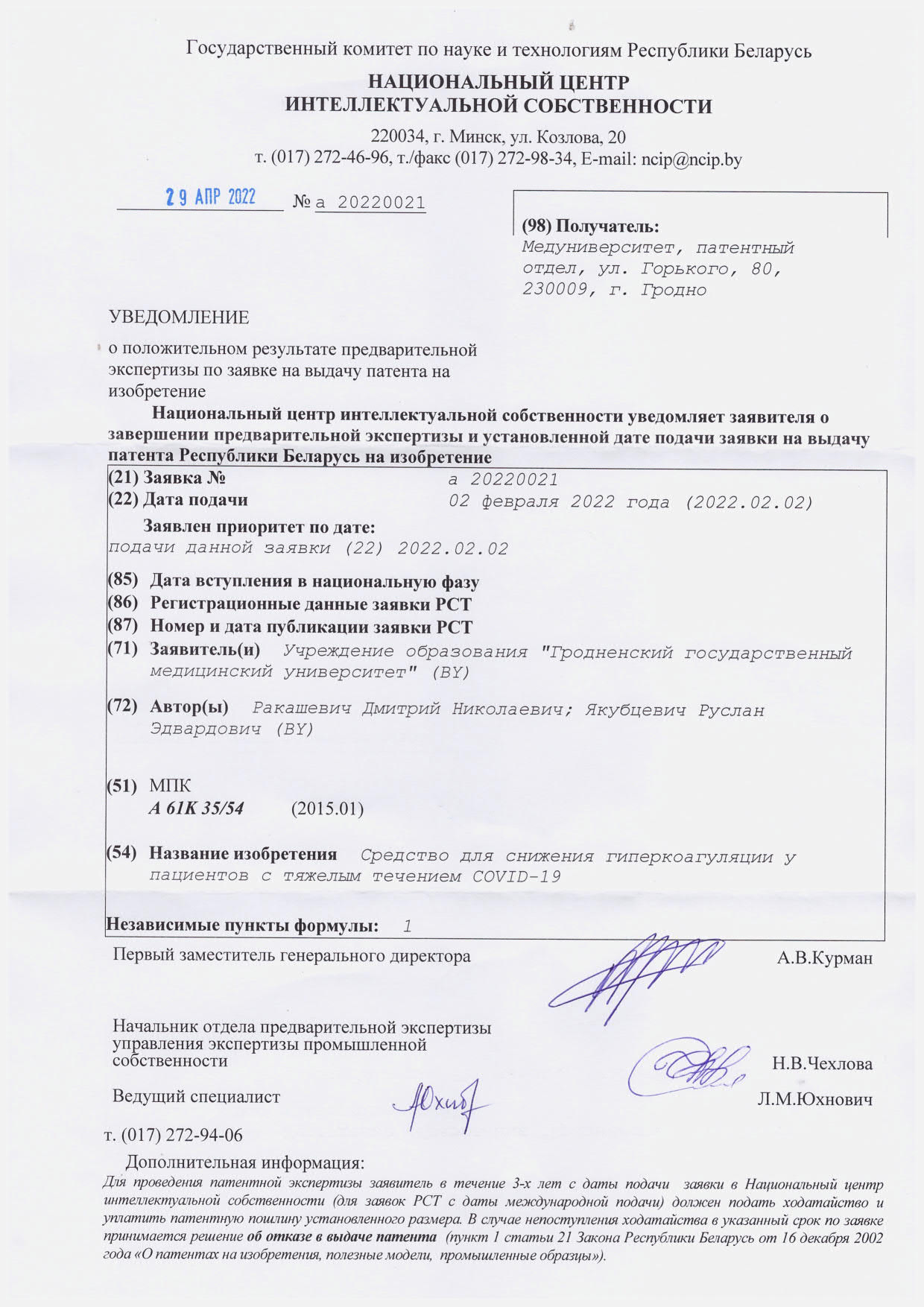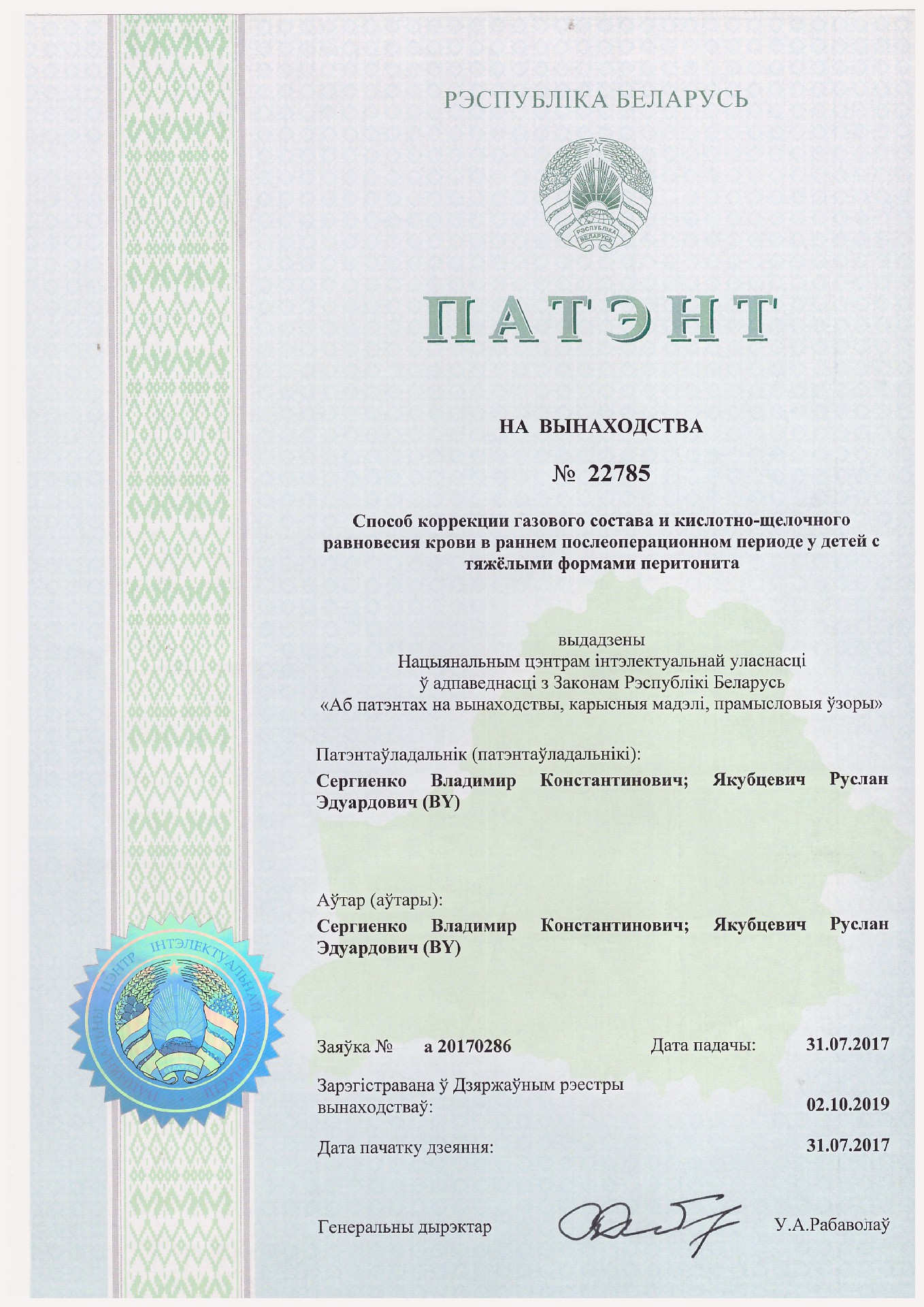 Университет Структура Кафедры Анестезиологии-реаниматологии Научная работа Патенты