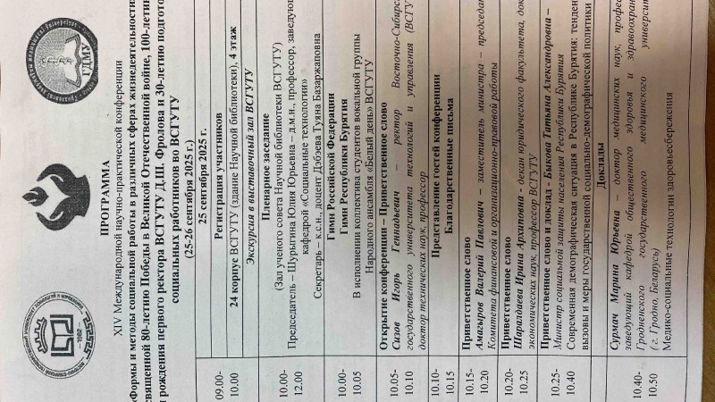 Конференция проводилась в 14-й раз, и в 2025 году посвящалась 80-летию Победы в Великой Отечественной войне и 100-летию со дня рождения первого ректора ВСГУТУ Дамнина Шагдуровича Фролова.