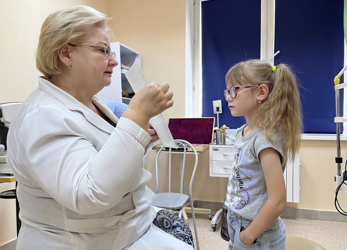 Доцент Ильина С.Н.обследует пациента в отделении микрохирургии глаза