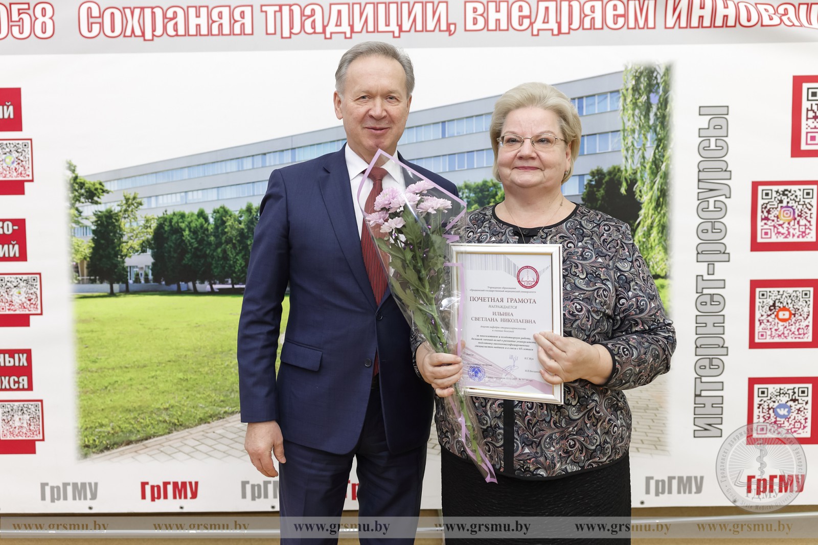 Почетной грамотой учреждения образования «Гродненский государственный медицинский университет» была удостоена доцент кафедры оториноларингологии и глазных болезней Светлана Николаевна Ильина.