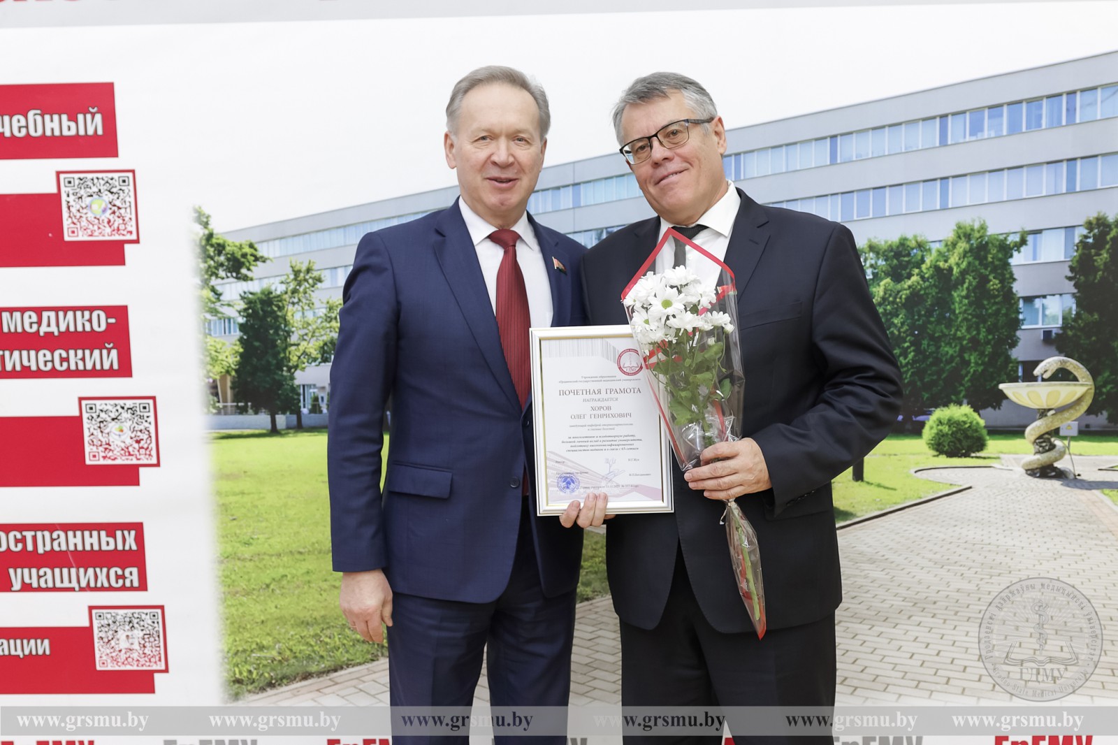 По традиции начало заседания было посвящено церемонии награждения сотрудников университета. Почетной грамотой учреждения образования «Гродненский государственный медицинский университет» был удостоен заведующий кафедрой оториноларингологии и глазных болезней Олег Генрихович Хоров