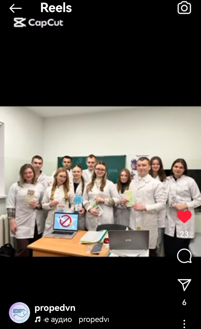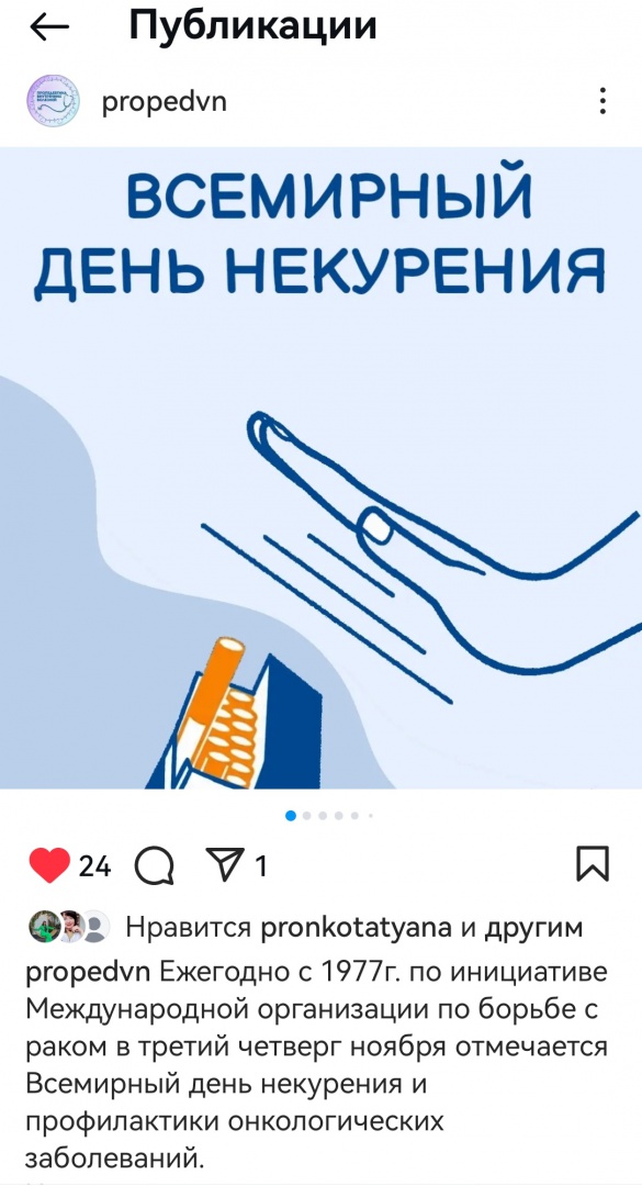 Студенткой 7 группы 3 курса ЛФ Лешковой Маргаритой подготовлена презентация для инстаграм-аккаунта кафедры на эту тему, в учебных группах проведены информационные часы.