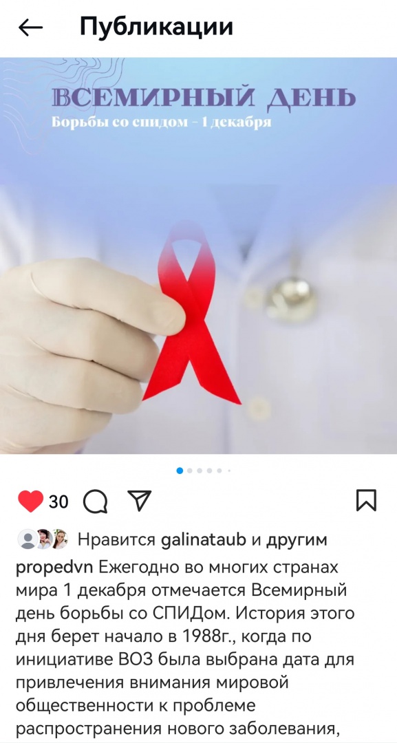 Подготовлена презентация для инстаграм-аккаунта кафедры, где представлены актуальные данные по поводу истории возникновения, эпидемиологии и мерам профилактики ВИЧ-инфекции.