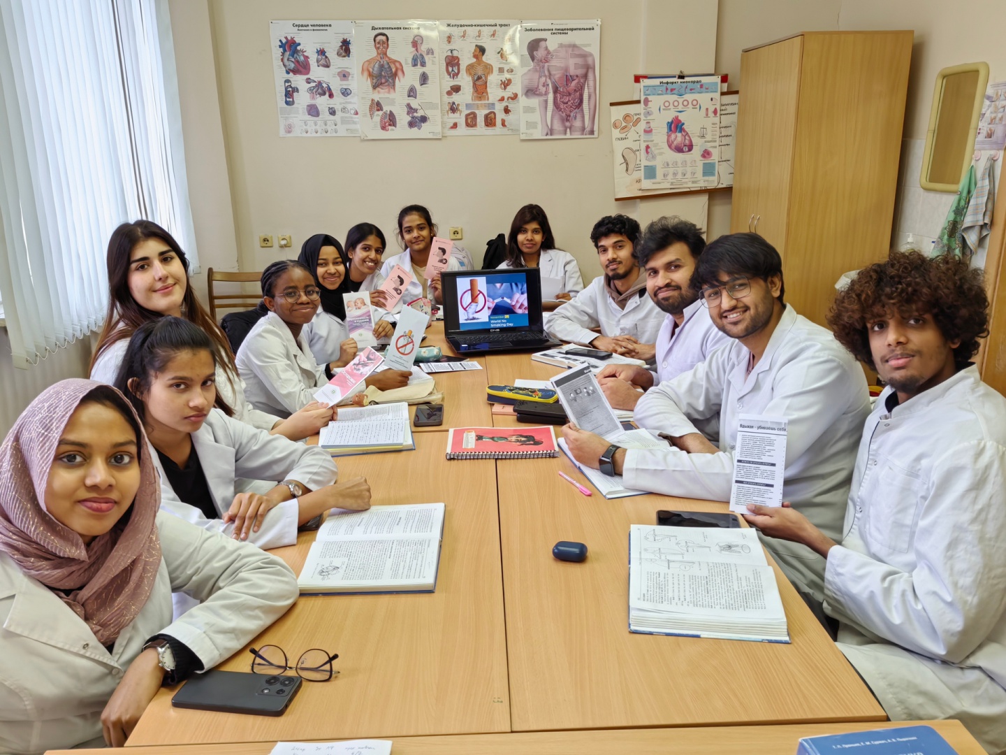 В 10 группе 3 курса ЛФ организована и проведена акция «Мы против курения!». Ст. преподавателем Тауб Г.С. сделано сообщение о влиянии курения на организм человека, приведены статистические данные по этой проблеме, организован просмотр видеоролика на данную тему, подготовлены буклеты. Каждый студент высказал своё мнение о том, почему он против курения. Видеоролик размещён в инстаграм-аккаунте кафедры.