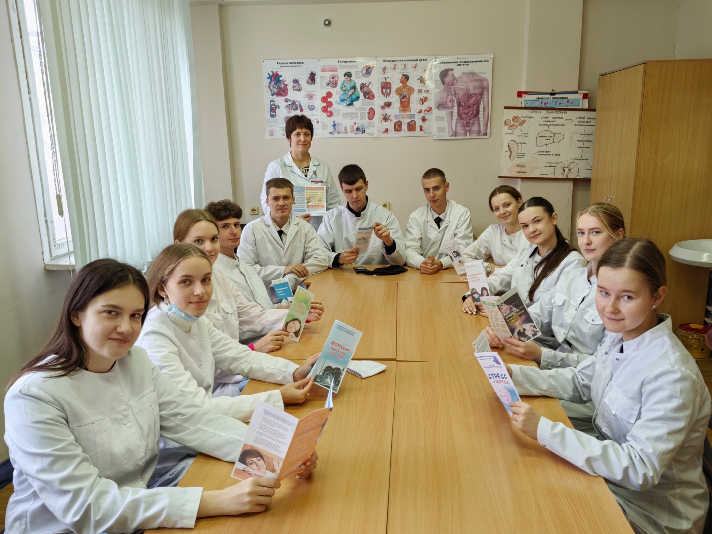 На кафедре пропедевтики были проведены информационные часы. Ст. преподаватель Апон Е.И. вместе со студентами 24 группы 3 курса ЛФ и 4 группы 2 курса ЛФ обсудили актуальность праздника, ознакомились с буклетами на тему профилактики стресса и депресии, узнали номер телефона доверия для оказания экстренной психологической помощи, а также прошли онлайн-тестирование для оценки уровня тревоги и депресии.
