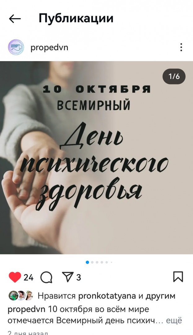 Студентки 7 группы 3 курса ЛФ Замараева Анастасия и Сорокина Татьяна подготовили презентацию в инстаграм-аккаунте кафедры, посвящённую Всемирному дню психического здоровья.