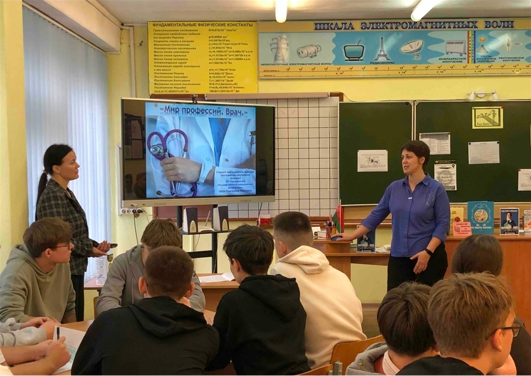 11 октября ст. преподаватель кафедры пропедевтики внутренних болезней Апон Е.И. и студенты 3 кураторской группы 2 курса ЛФ приняли участие в пиар-акции по профориентации «Реклама профессий» среди 8-11 классов в ГУО «СШ №20 им. Е.И. Чайкиной г. Гродно».