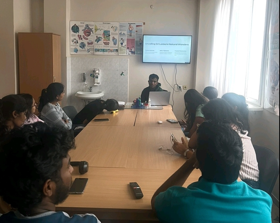 28.10.2025 г. доцент Сурмач Е. М. провела в 13а кураторской группе 1 курса ФИУ информационный час. Студенты представили свою страну, рассказали об истории и культуре Шри-Ланки. Затем обсудили тему «Профилактика простудных заболеваний». Выяснили, что, оказывается, нет плохой погоды, а есть неподходящая одежда. Был продемонстрирован вариант зимнего гардероба, поговорили о «многослойности» в одежде.