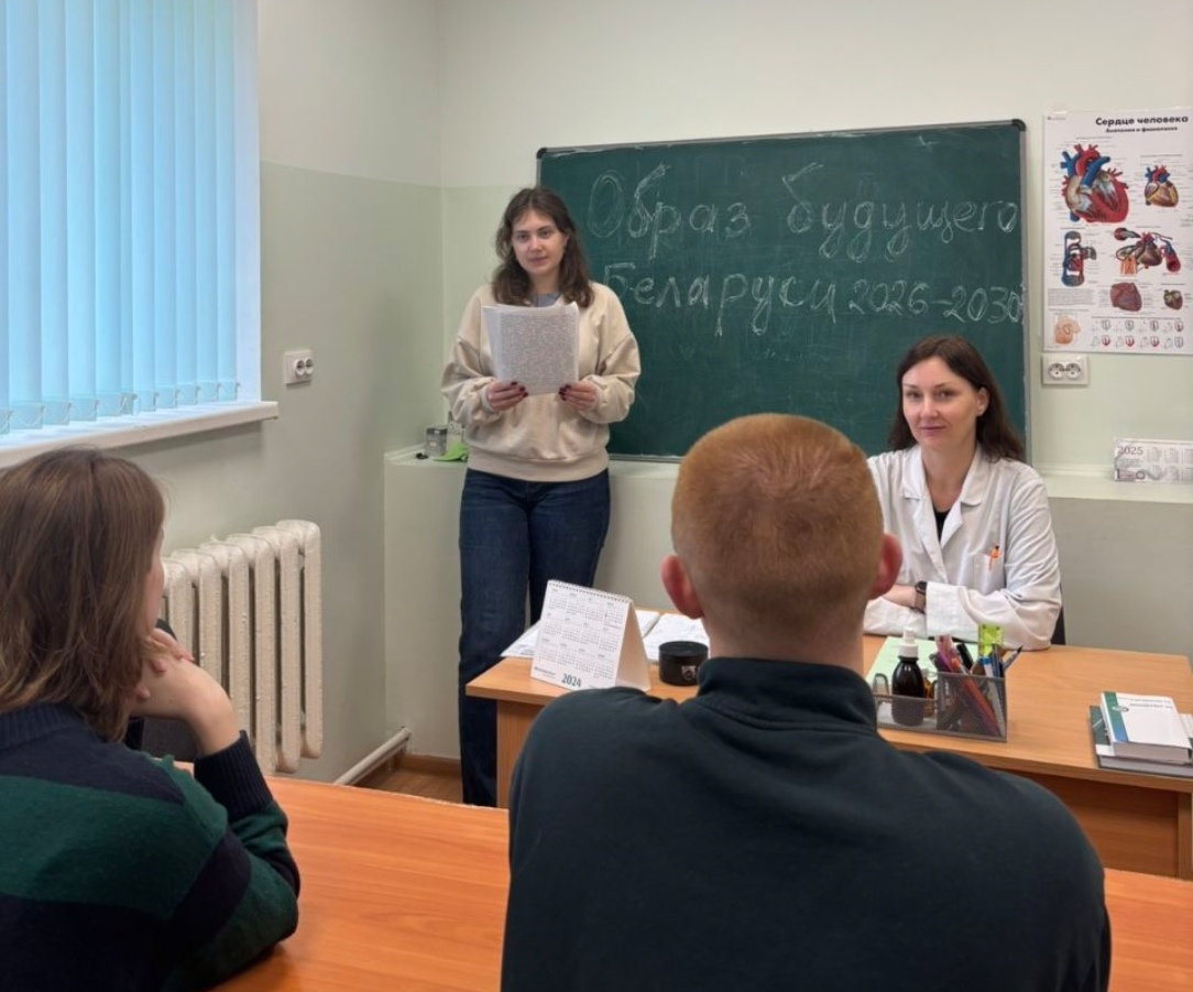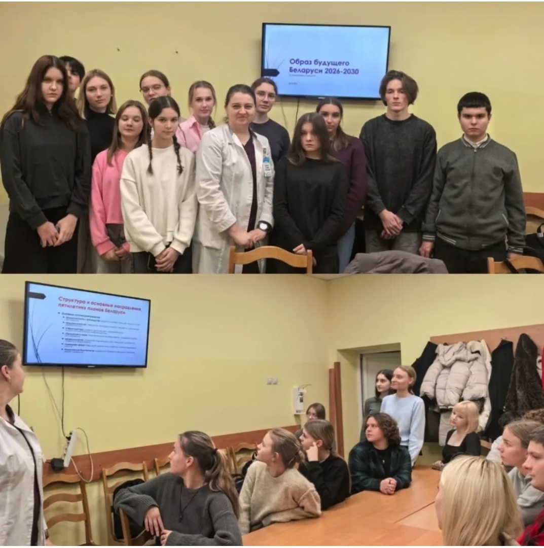 Ст. преподаватель Сицко Н.В. и студенты 25, 26 групп 5 курса ЛФ: обсудили прошедшие пятилетки; углубились в темы науки, медицины и образования, рассмотрев, как каждая из этих областей влияет на наше будущее; а также приняли участие в соц. опросе, чтобы внести свой вклад в формирование видения будущего Беларуси.