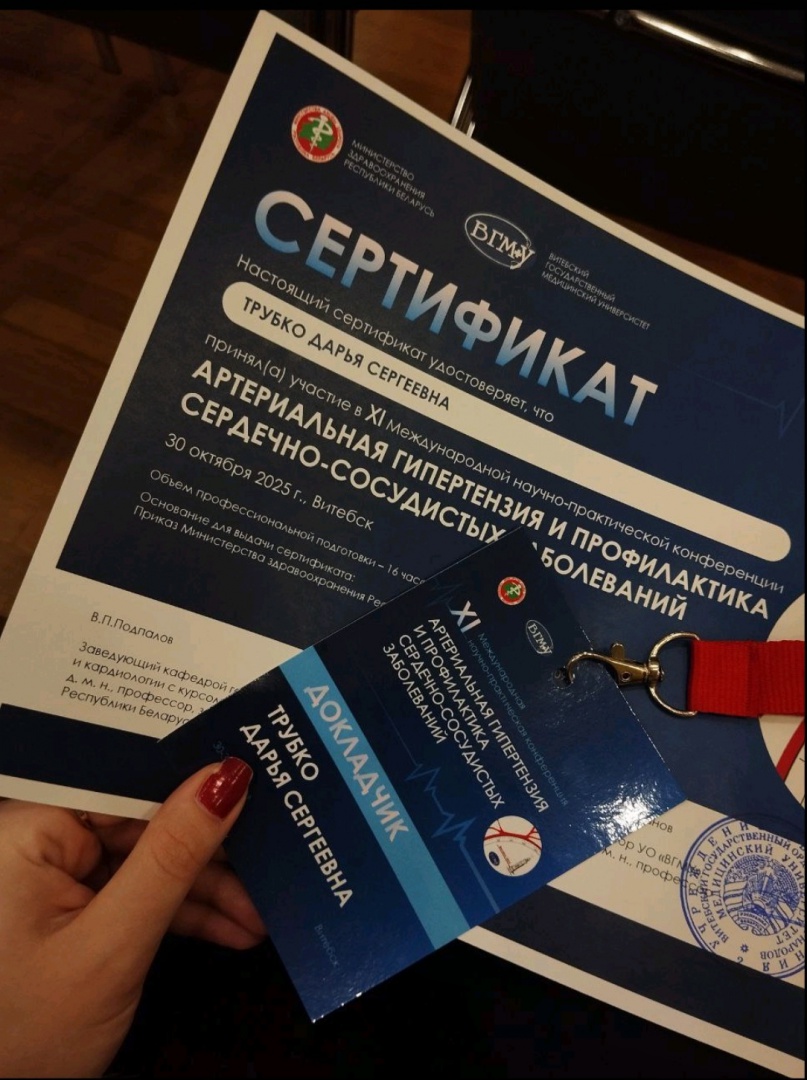 30-31.10.2025 г. кафедра пропедевтики внутренних болезней приняла участие в XI Международной научно-практической конференции «Артериальная гипертензия и профилактика сердечно-сосудистых заболеваний» в г. Витебске.
