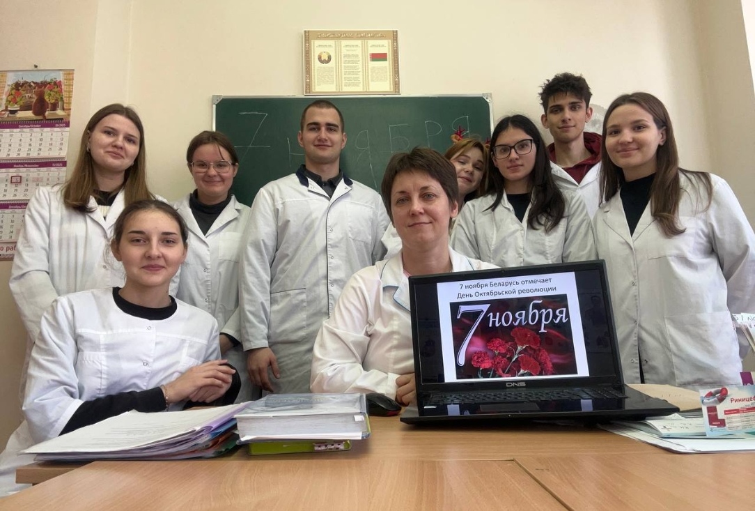 В преддверии 7 ноября ст. преподаватель Апон Е.И. провела информационный час в 7 группе 3 курса МПФ на тему «Революция 1917г. Как это было?» Вспомнили ход исторических событий, обсудили итоги и последствия данной революции для Беларуси.